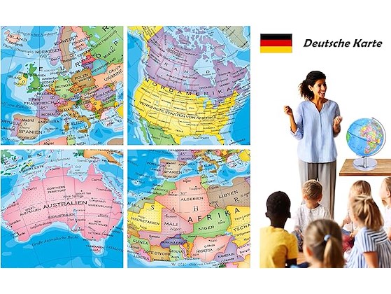 Ongebruikt, getest en werkend, Exerz Lichtgevende wereldbol 23 cm - Metalen sokkel - Duitse kaart - Schoolbol met ledverlichting met batterijen ( niet inbegrepen) B0B4X5LL2T