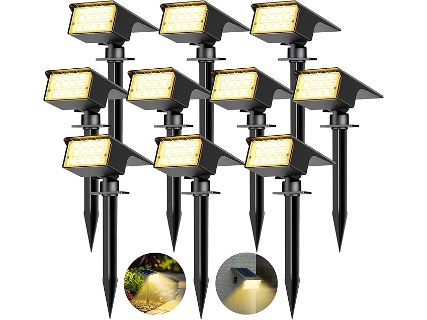Gebruikssporen, getest en werkend, Kolpop 10 stuks / 77 LED buitenlampen op zonne-energie 3000K warm wit, waterdicht IP65, 1800 LM, geschikt voor terras, zwembad, bloempotten, vloer, oprit, patio, B0F38D1K82