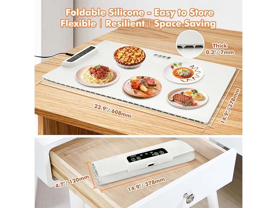 Ongeopend, ok, Anatole Warmhoudplaat, elektrische eetwarmer, opvouwbare siliconen buffetwarmer, groot, 61 x 38 cm, volledige verwarming met 3 instelbare temperaturen, timers, voor buffet, party, restaurant, B0D32NPM7Z