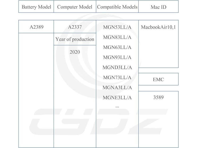 Ongeopend, CYDZ A2389 vervangende batterij voor Apple MacBook Air 13 inch A2337 M1 (versie 2020) EMC 3589 [11,39 V/4380 mAh] voor MGNA3LL/A MGND3LL/A MGN53LL/A MGN63LL/A MGN73LL/A MGNA MGNA 83 LL/L A MGN93LL/A , B0C3FXYLKB