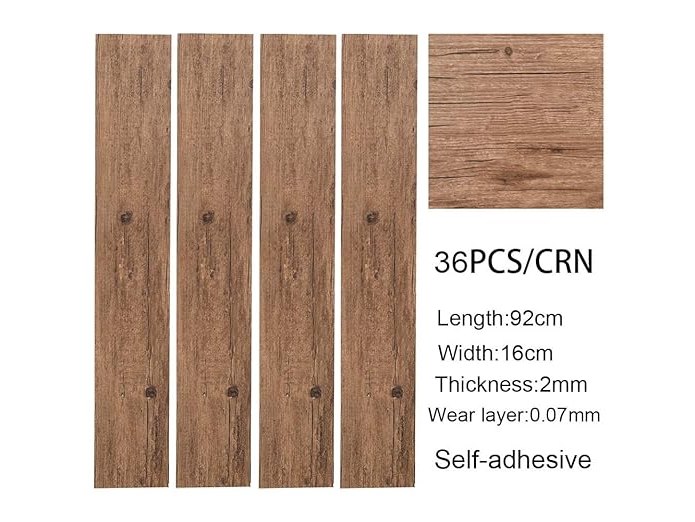 Ongebruikt, ok, compleet, INMOZATA 5,01 m² pvc-vloerbedekking, zelfklevend, houtlook, vinylvloer, zelfklevend, antislip, waterdicht, snijbaar, laminaatvloer, 91,5 cm x 15,2 cm, dikte 2 mm, 36 tegels, natuurlijke kleur, B07YHS1DN7