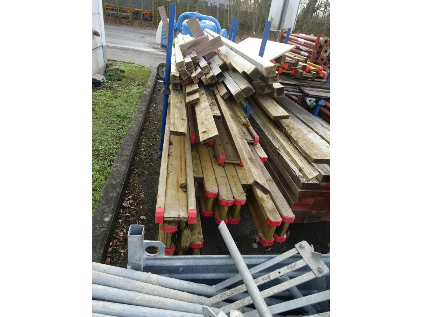 Div lengtes, 31x 1400 en rest plm 6000, plus metalen bak met bekistingsonderdelen.