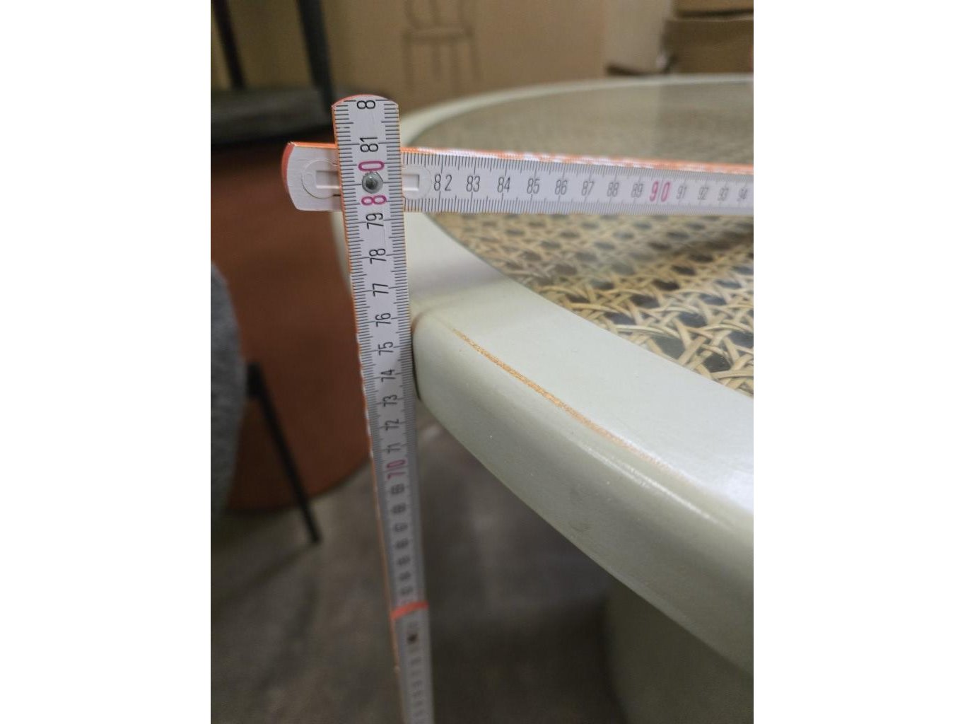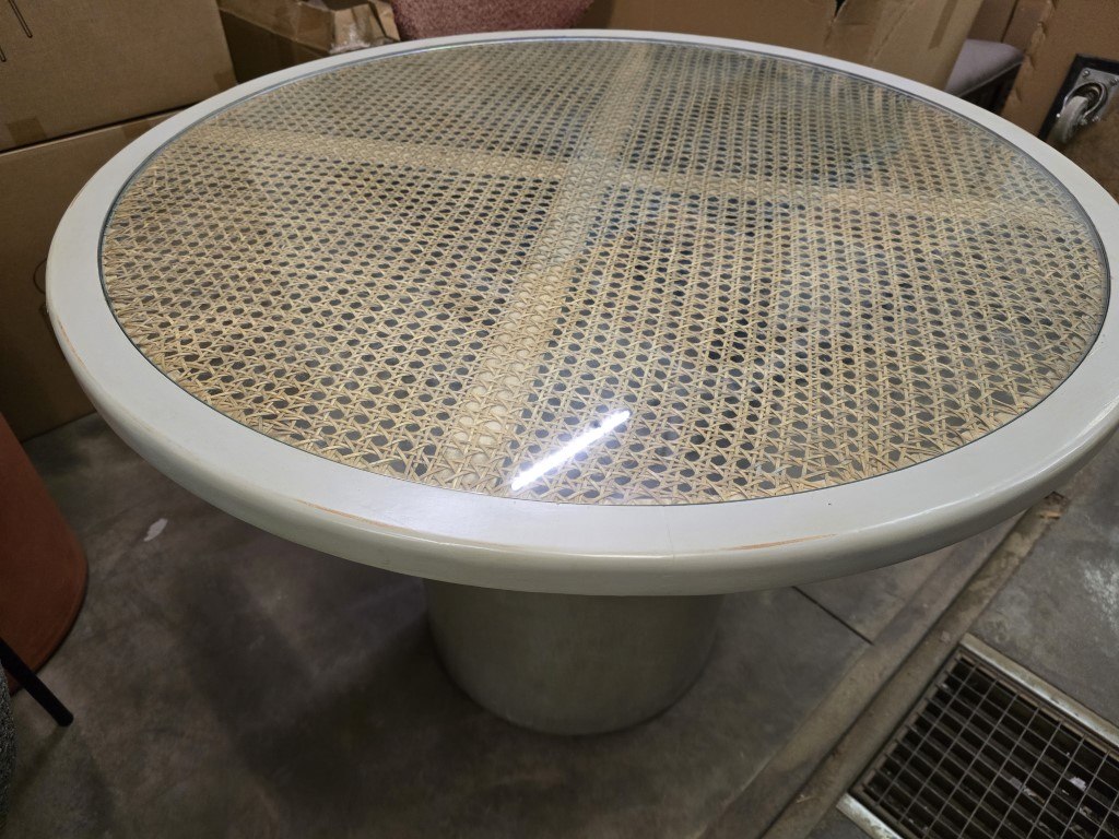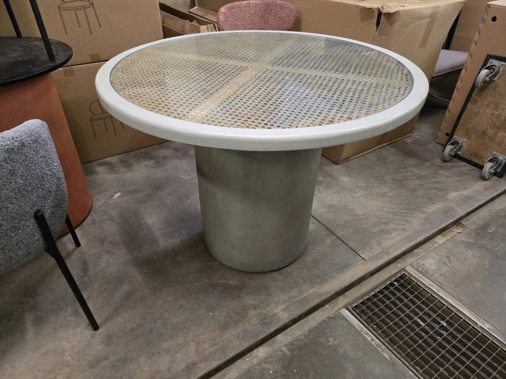 DIA 100CM, Hoogte 76cm - Mortex poot Olive - Houten tafelblad Riet met glastop