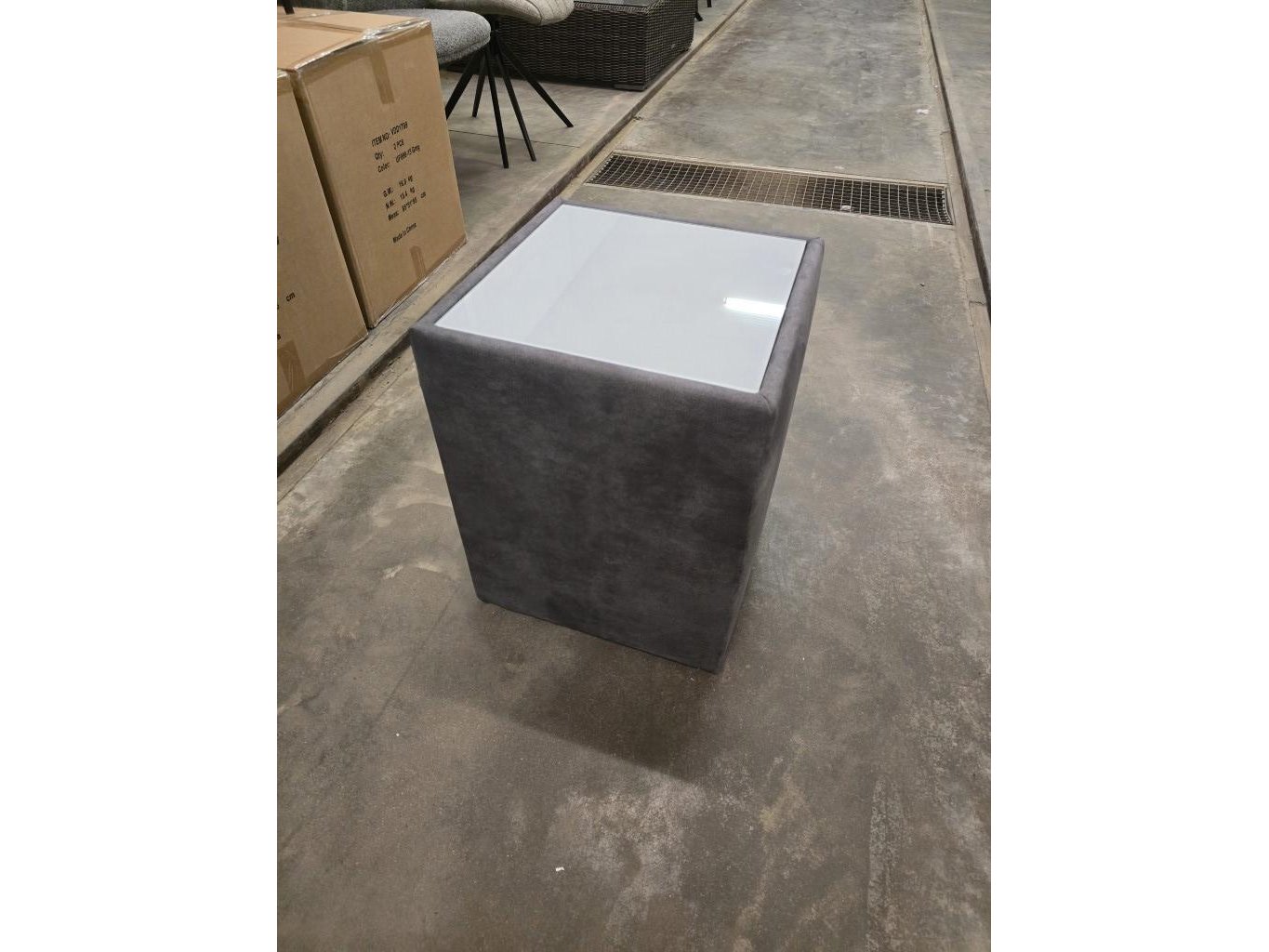 1x bijzettafeltje pu leder met glasblad 42x42x52h