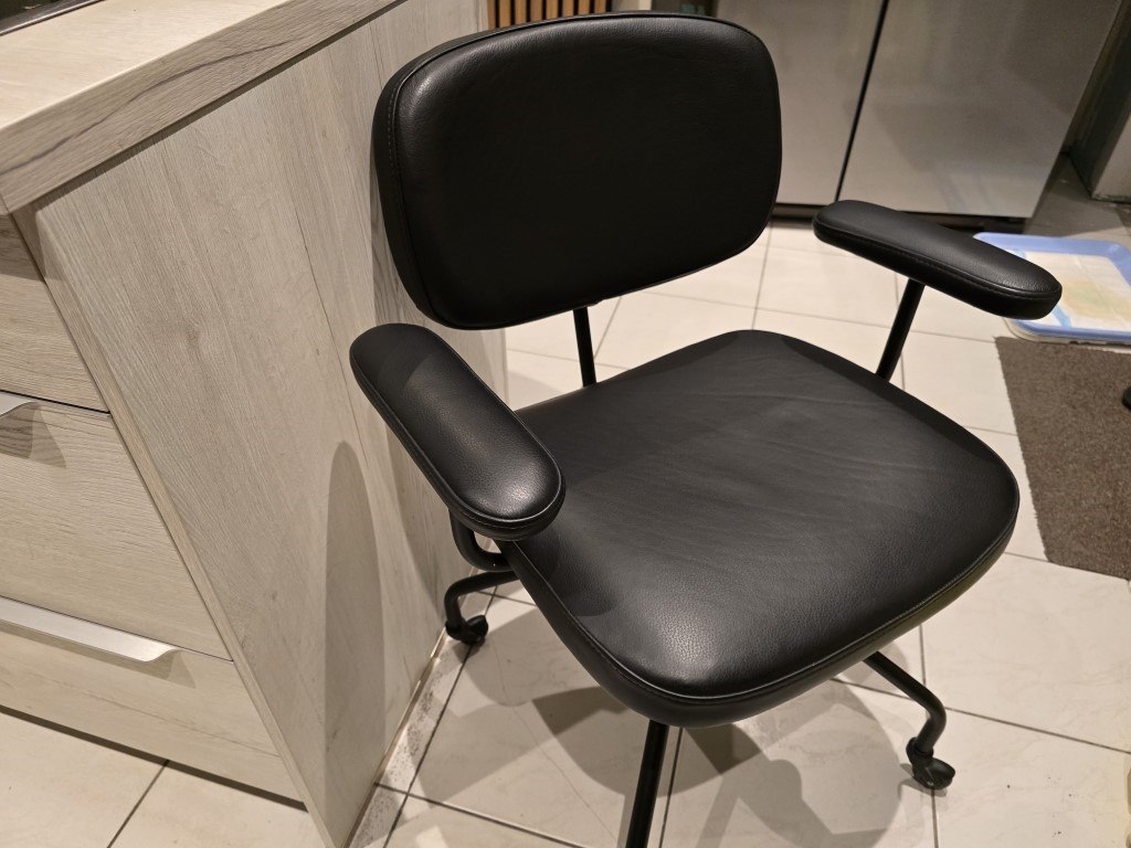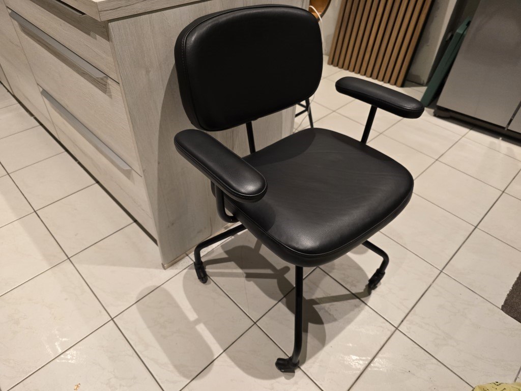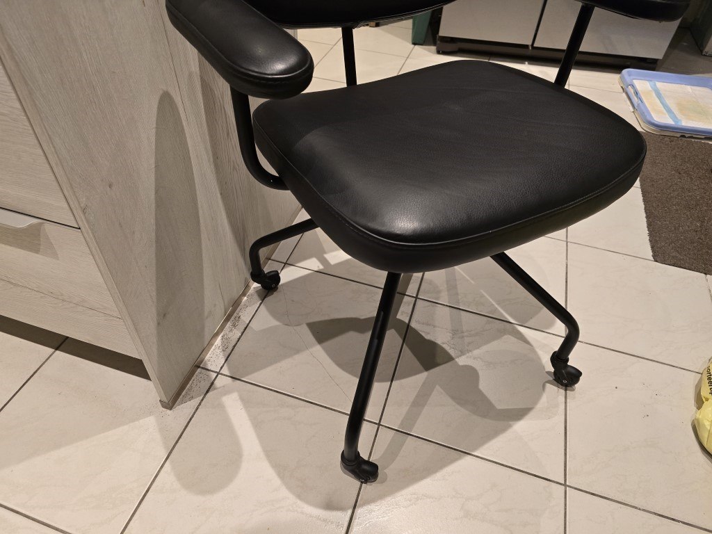 1x bureaustoel zwart leder draaibaar en op wieltjes