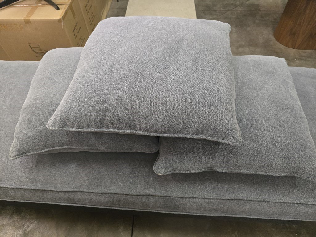 1x groot kussen 230x80x15h grijs en 3 kussens 55x55