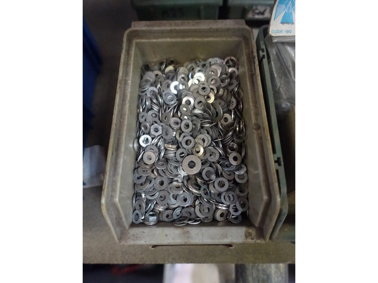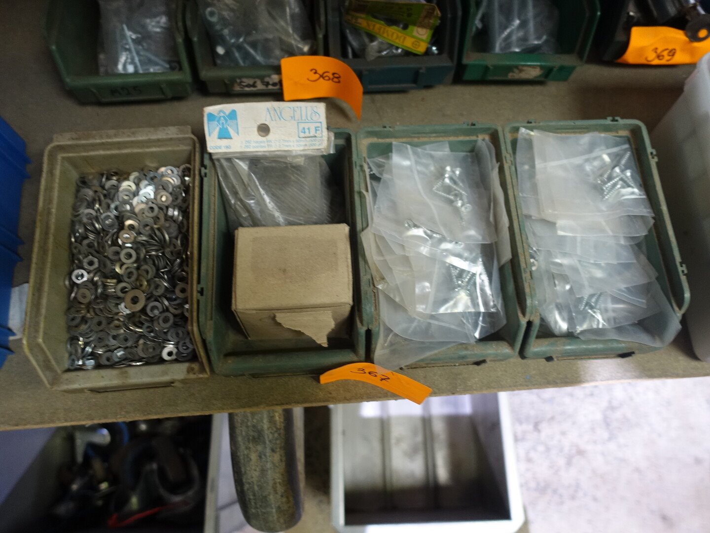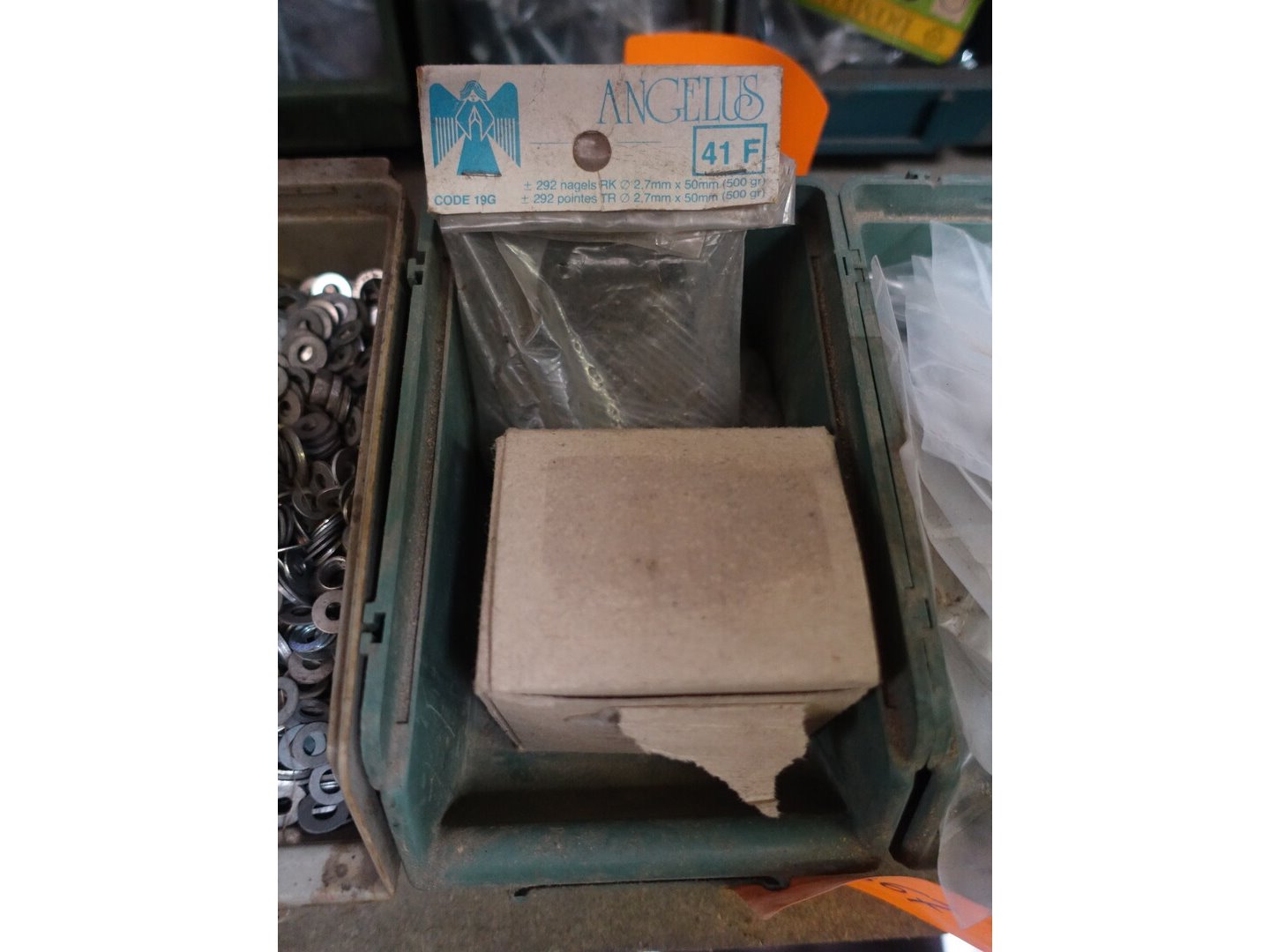 4 bakken vloten, nagels en vijzen