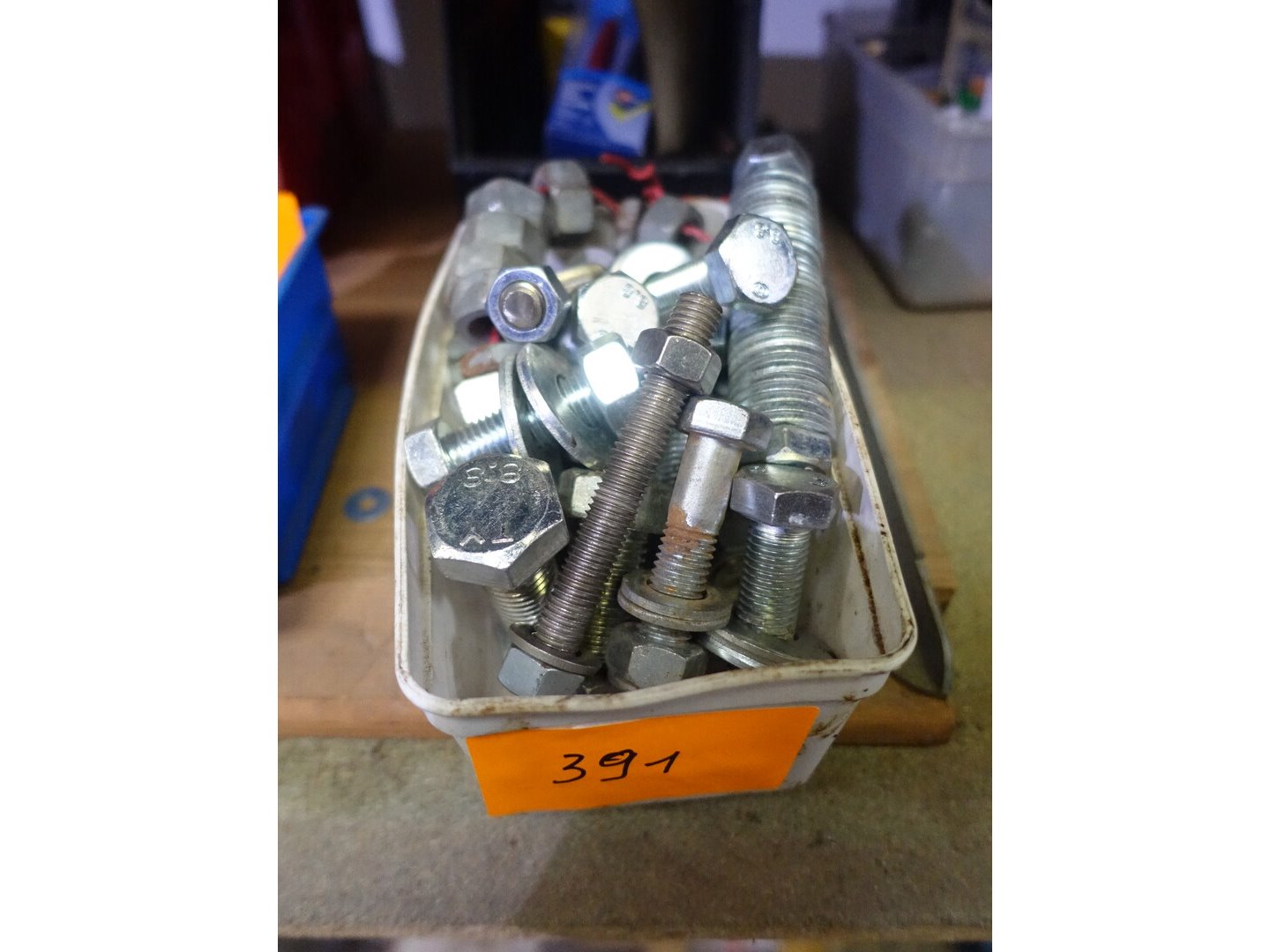 Doos met zeskanttapbouten met moer en ring