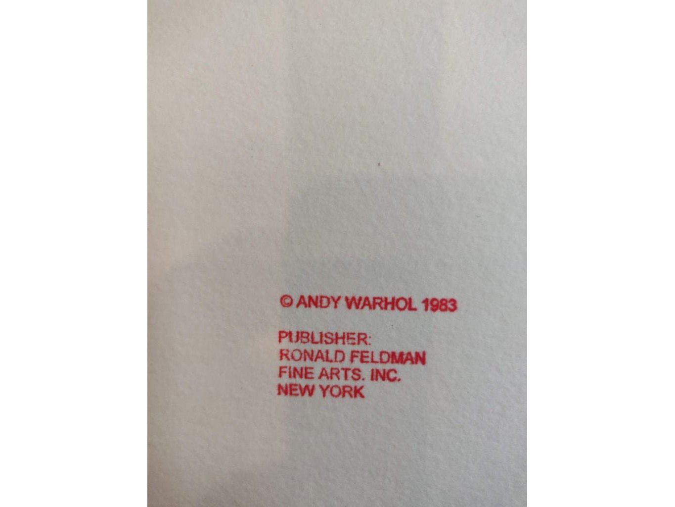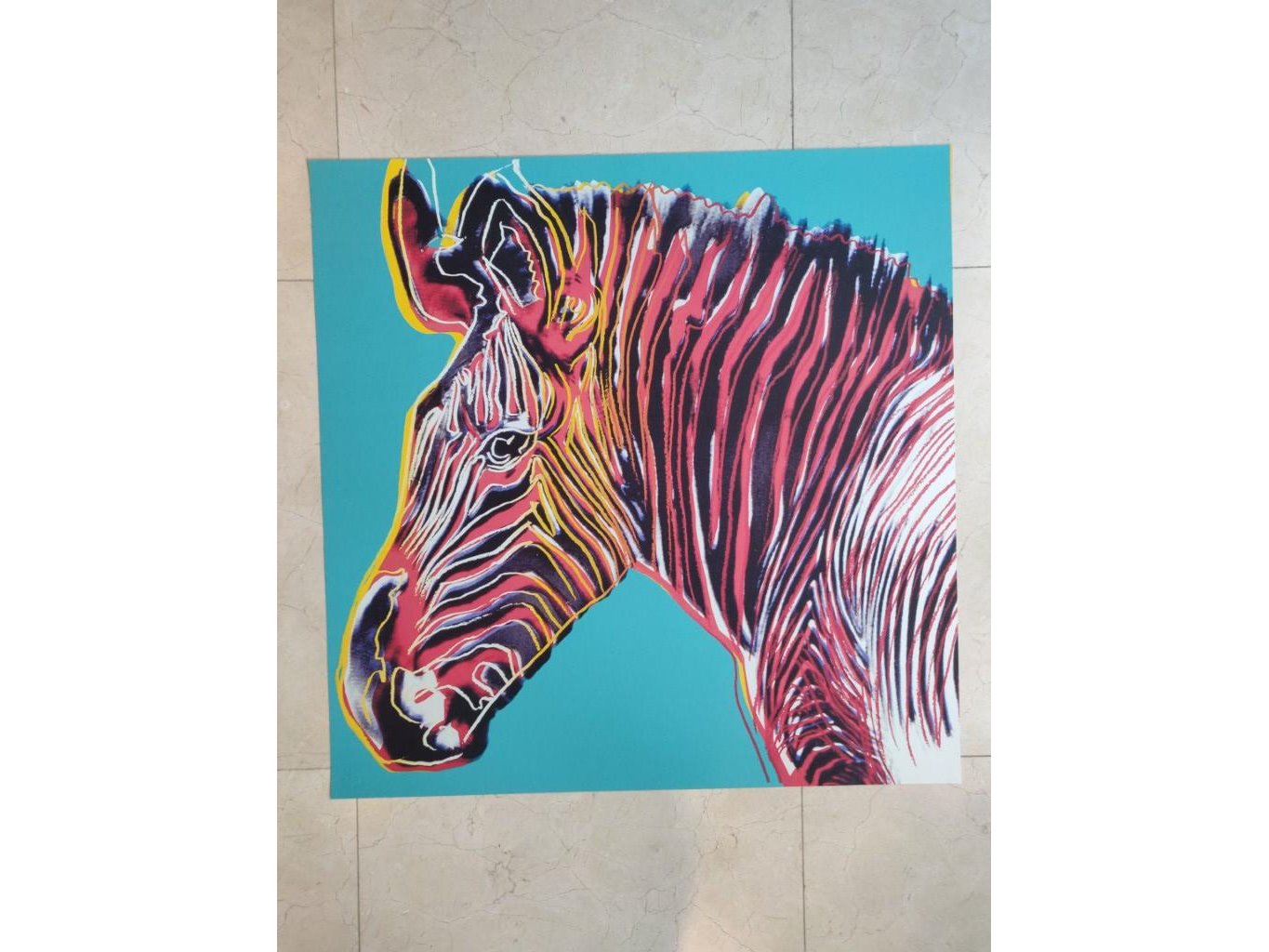 (After)<br /> Serie : Endangered species<br /> ZEBRA<br /> Datum : 1983<br /> Techniek : Zeefdruk in kleur op Lenox Museumbord<br /> Afmeting werk : 96,5x96,5cm<br /> Proefdruk : Niet genummerd en niet getekend<br /> Uitgegeven door Ronald Feldman,Fine Arts Inc, New York<br /> Rode inktstempel op achterzijde : Andy Warhol 1983<br /> Publisher Ronald Feldman<br /> Fine Arts.Inc. New York<br /> Blinddrukstempel van drukker Rupert Jasen Smith (New York) in linker beneden hoek.<br /> Dit werk is afgeleid van de originele versie.Kleine gebreken rechtvaardigen dat het om een proefdruk gaat.<br /> Niet ingekaderd<br /> Perfecte staat