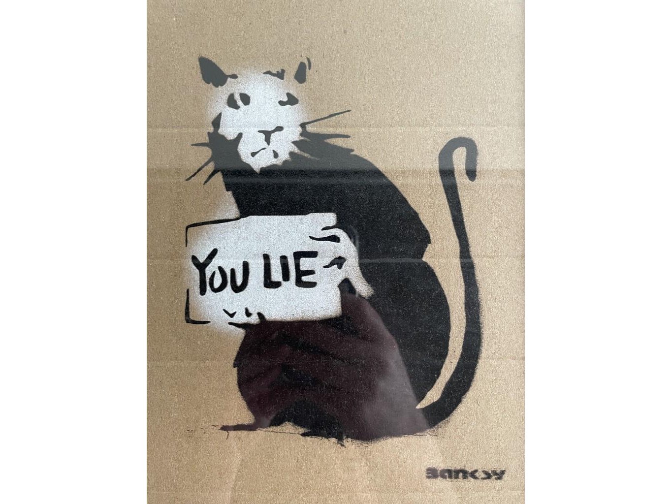 (After)<br /> Ingekaderd karton dat waarschijnlijk uit het park komt van Dismaland (in 2015)<br /> Afmeting werk : 20x30cm<br /> Limited édition : 50 stuks<br /> Genummerd : 38/50<br /> Ingekaderd dubbelzijdig<br /> Perfecte staat<br /> Zonder Certificaat <br /> Het is waarschijnlijk ondertekend door de organisatoren van het park.<br /> Ter info : Voor de werken van Dismaland of het Walled Off Hotel zijn er geen echtheidscertificaten uitgeschreven.<br /> En pest control levert geen documenten af.