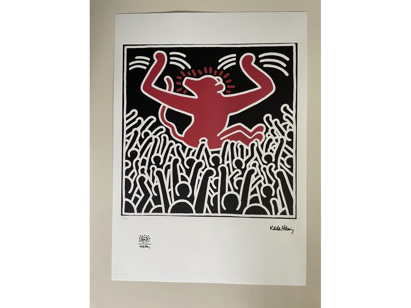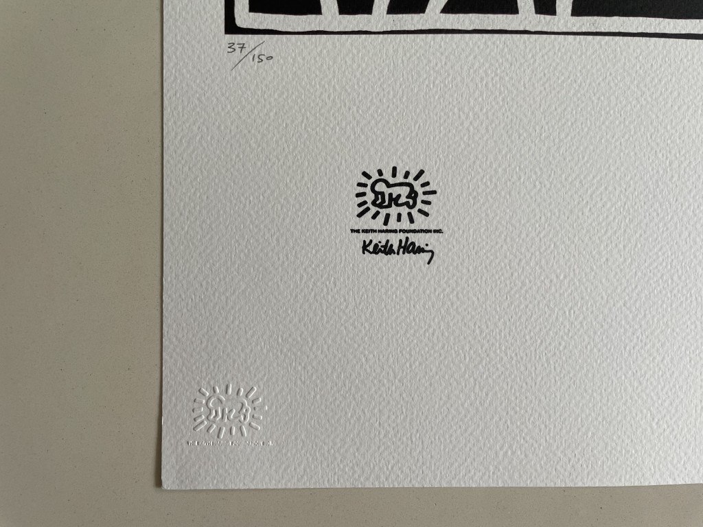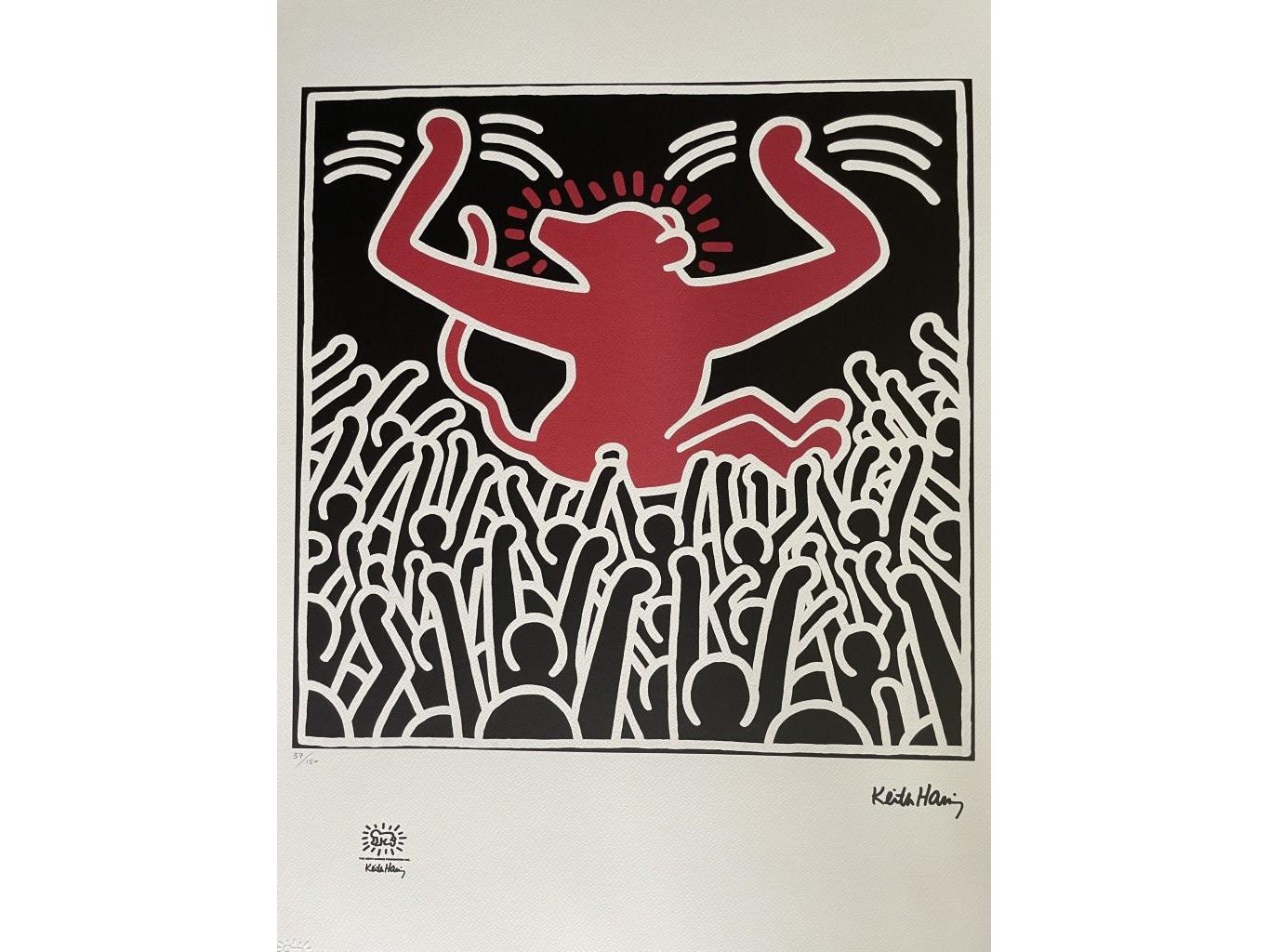(After)<br /> Lithografie<br /> Getekend in de plaat <br /> Afmeting : 50x70cm<br /> Blinddrukstempel + inktstempel Keith Haring<br /> foundation <br /> Limited édition : 150 stuks<br /> Genummerd : 37/150<br /> Nieuwstaat<br /> Zonder Certificaat