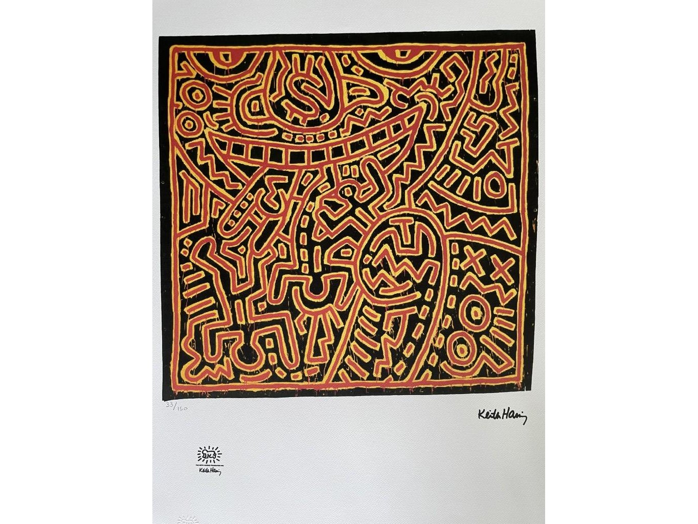 (After)<br /> Lithografie<br /> Getekend in de plaat <br /> Afmeting : 50x70cm<br /> Blinddrukstempel + inktstempel Keith Haring<br /> foundation <br /> Limited édition : 150 stuks<br /> Genummerd : 33/150<br /> Nieuwstaat<br /> Zonder Certificaat