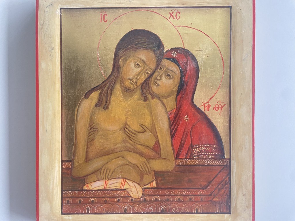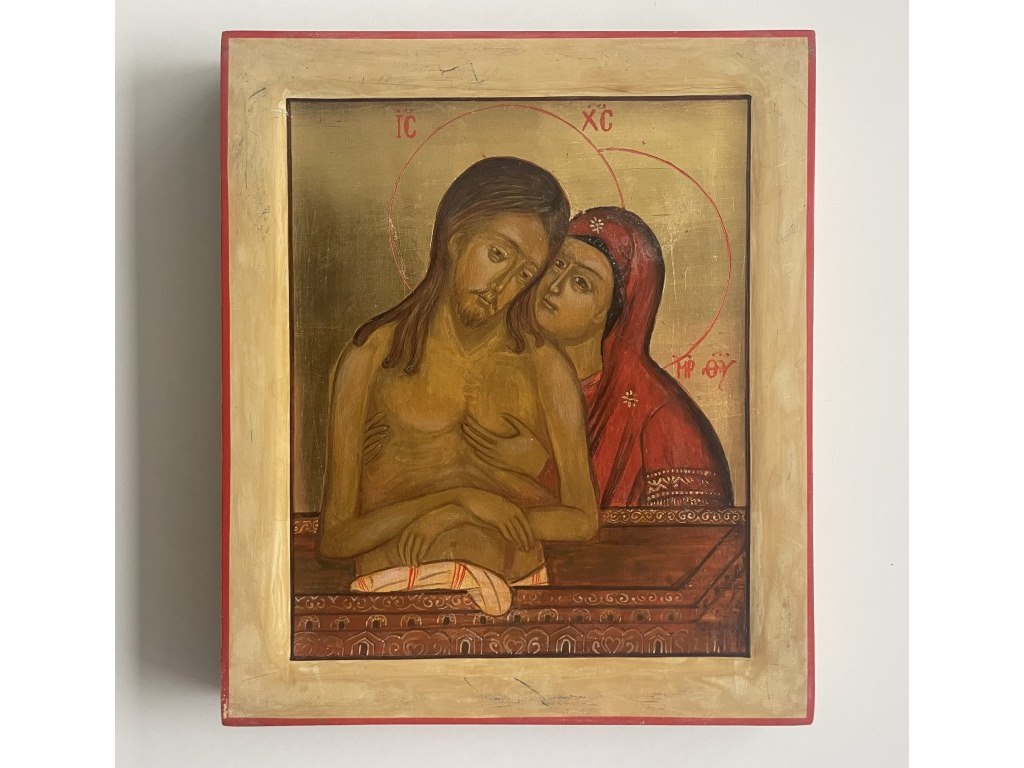Op hout van Jezus en Maria <br /> Met bladgoud afgewerkt 27x27cm / 2,8cm dik<br /> Heel mooi werk