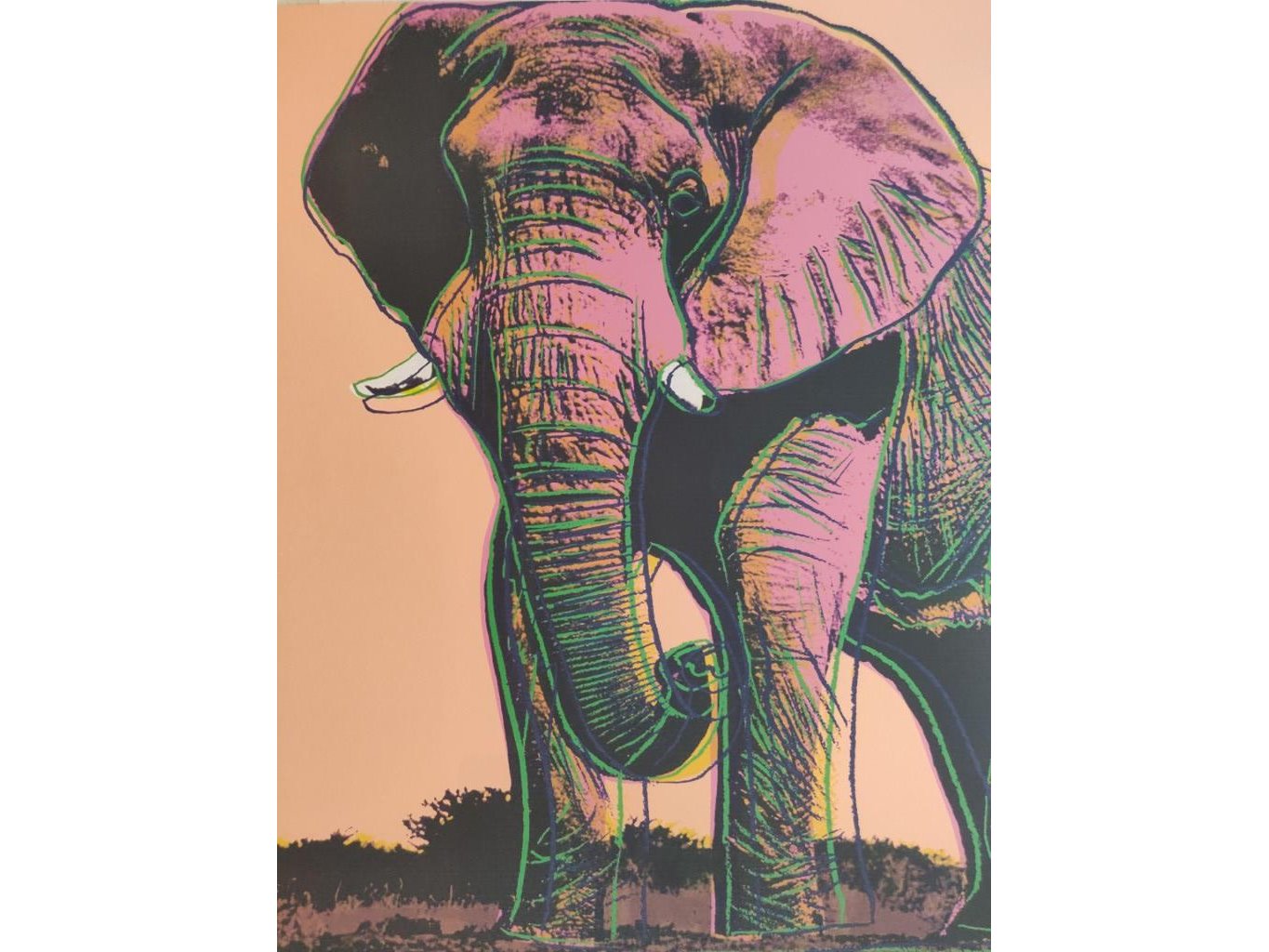 (After)<br /> Serie : Endangered species<br /> OLIFANT<br /> Datum : 1983<br /> Techniek : Zeefdruk in kleur op Lenox Museumbord<br /> Afmeting werk : 96,5x96,5cm<br /> Proefdruk : Niet genummerd en niet getekend<br /> Uitgegeven door Ronald Feldman,Fine Arts Inc, New York<br /> Rode inktstempel op achterzijde : Andy Warhol 1983<br /> Publisher Ronald Feldman<br /> Fine Arts.Inc. New York<br /> Blinddrukstempel van drukker Rupert Jasen Smith (New York) in linker beneden hoek.<br /> Dit werk is afgeleid van de originele versie.Kleine gebreken rechtvaardigen dat het om een proefdruk gaat.<br /> Niet ingekaderd<br /> Perfecte staat