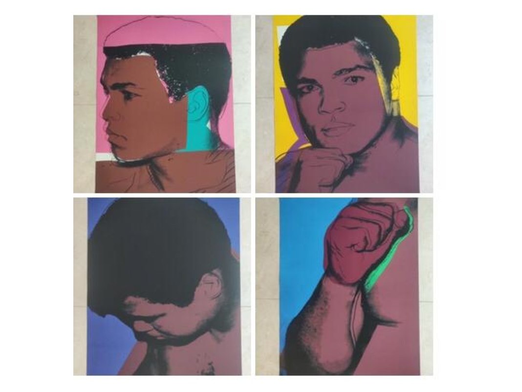 (After)<br /> Serie : MUHAMED ALI4 stuks <br /> Techniek : Zeefdruk in kleur Afmeting werk : 40''x30'' (101.6 cm x 76.2 cm)<br /> Niet genummerd en niet getekend<br /> Inktstempel op achterzijde<br /> Dit werk is afgeleid van een originele versie.<br /> Niet ingekaderd<br /> Zonder Certificaat<br /> Goede staat