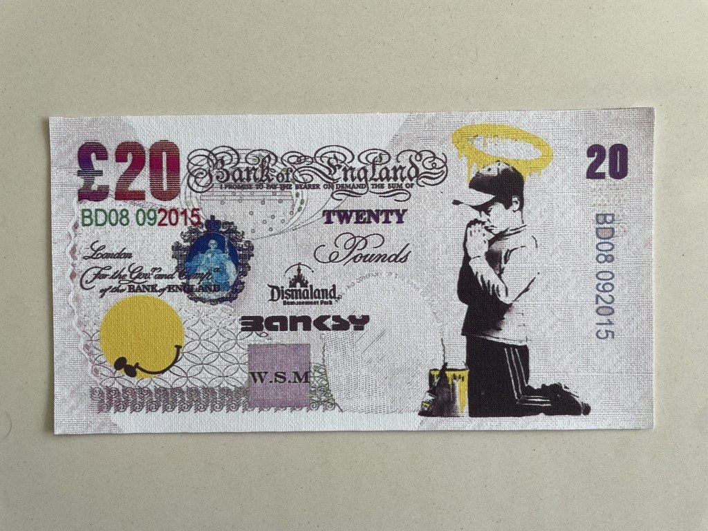 (After)<br /> Bankbiljet GROOT <br /> Afmeting kader:22,5x 31,5 <br /> Ingekaderd (dubbelzijdig)Nieuwstaat<br /> Zonder Certificaat<br /> Ter info : Voor de werken van Dismaland of het Walled Off Hotel zijn er geen echtheidscertificaten uitgeschreven / En pest control levert geen documenten af.