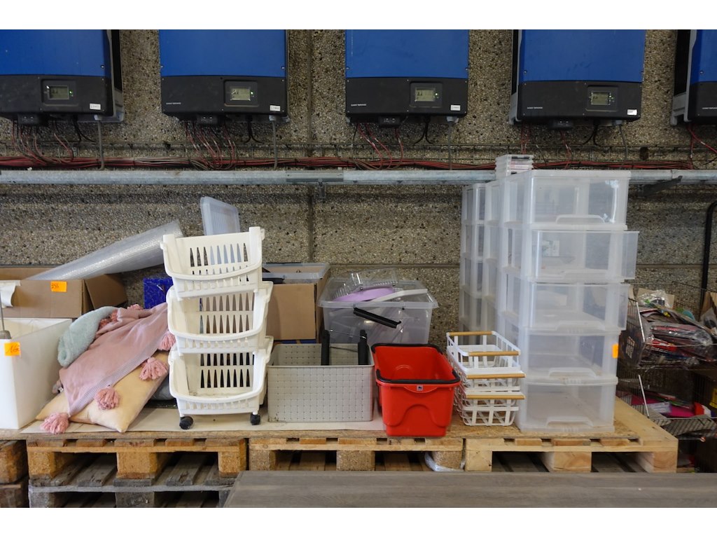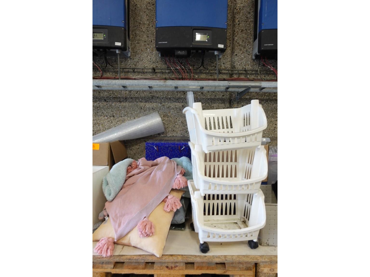 Oa: plastieken bakken , kussens, deken , winkelmand ,....