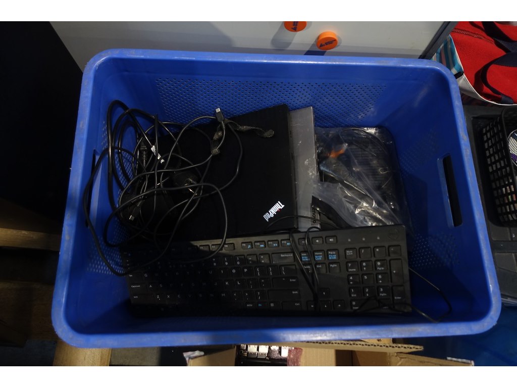Oa. 2x scherm, toetsenborden, pc's, labelprinter,...<br /> locatie: b13