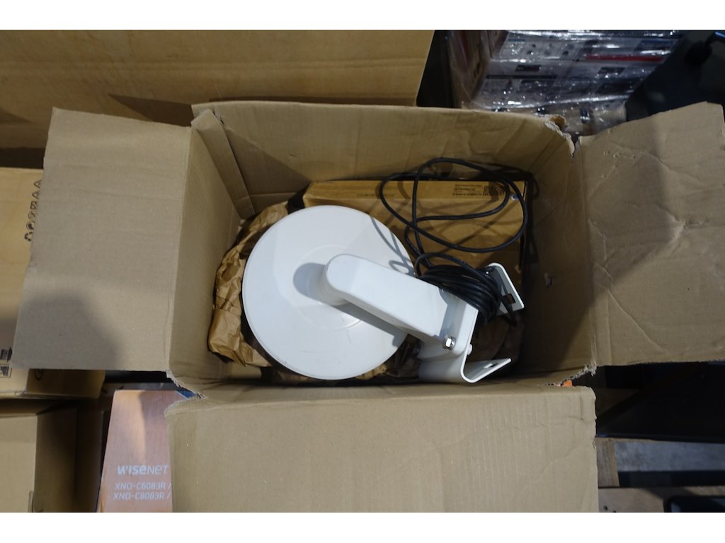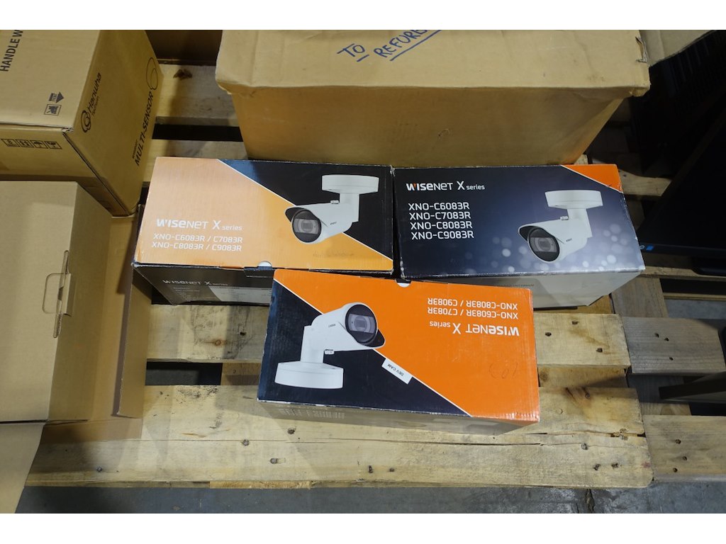 6x pallet diverse beveiligingscamera's wisenet + bevestigingen