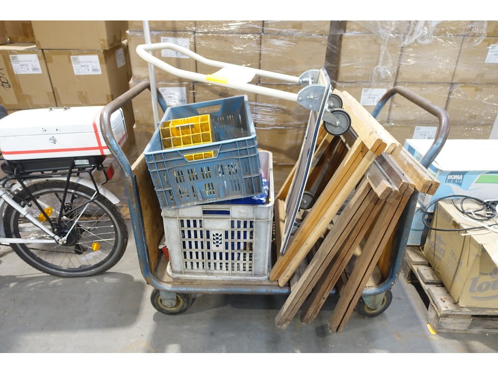 Inhoud oa: transportkar, schragen, wielkeg,..<br /> locatie: B12
