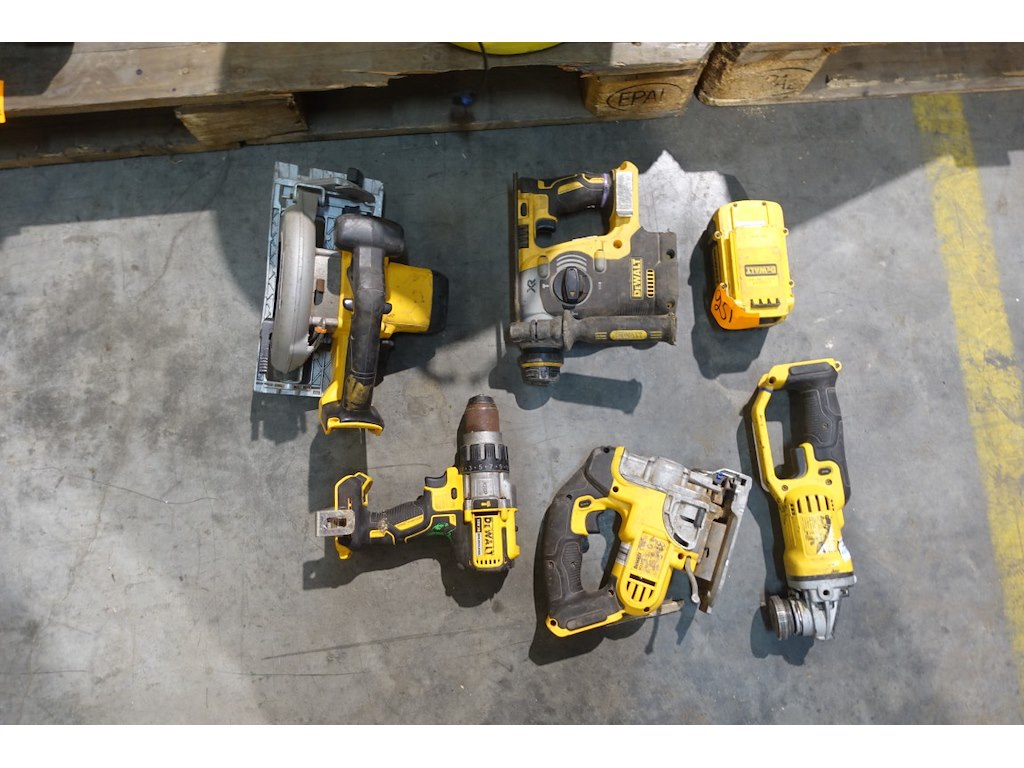 Vv accu cirkelzaag, accu decoupeerzaag, accu slijpschijfmachine, accu klopboorhamer, accu schroefboormachine, 2x accu & lader<br /> locatie: A10