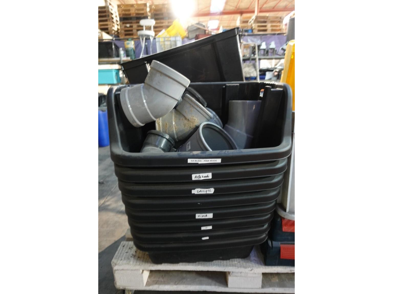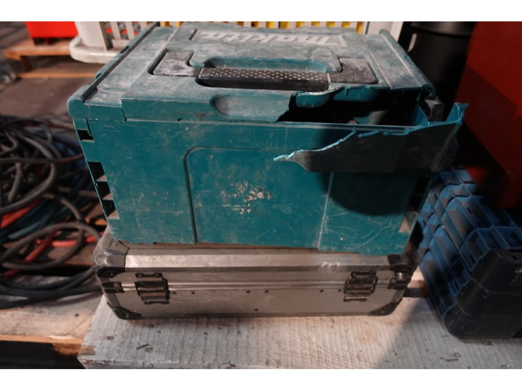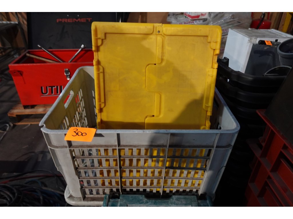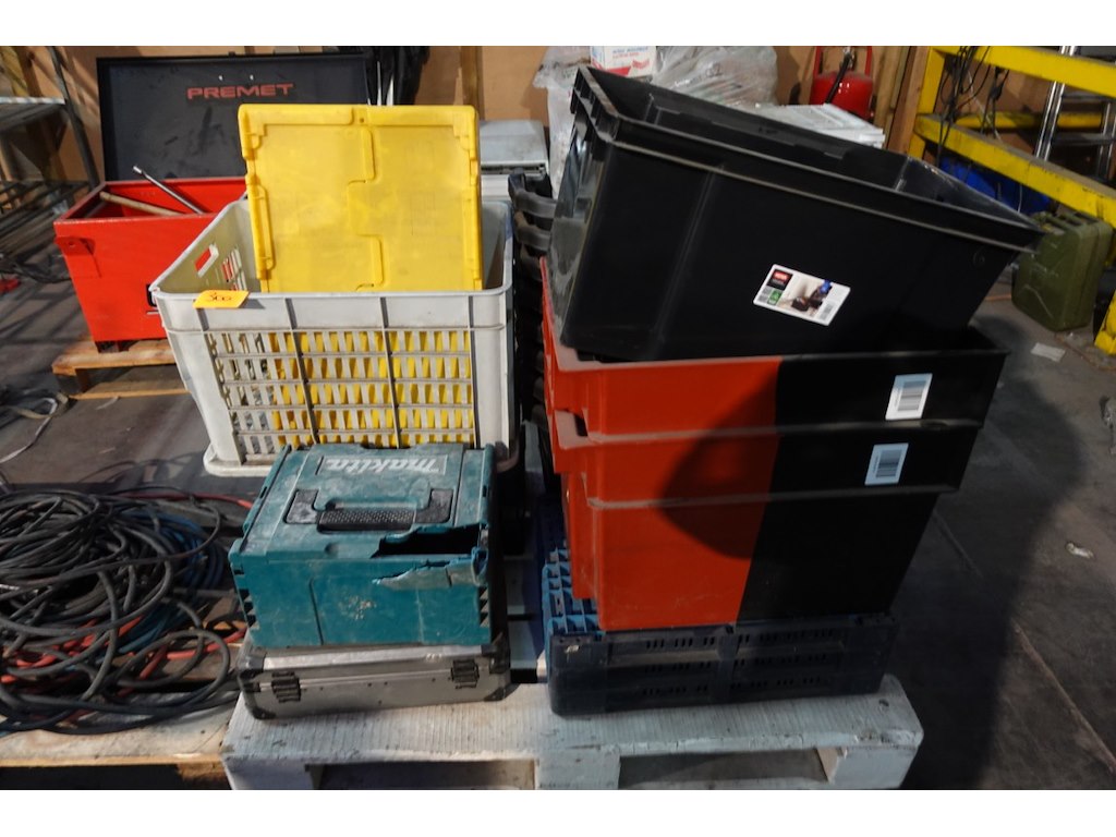 Partij lege werkkoffers & grijpbakken