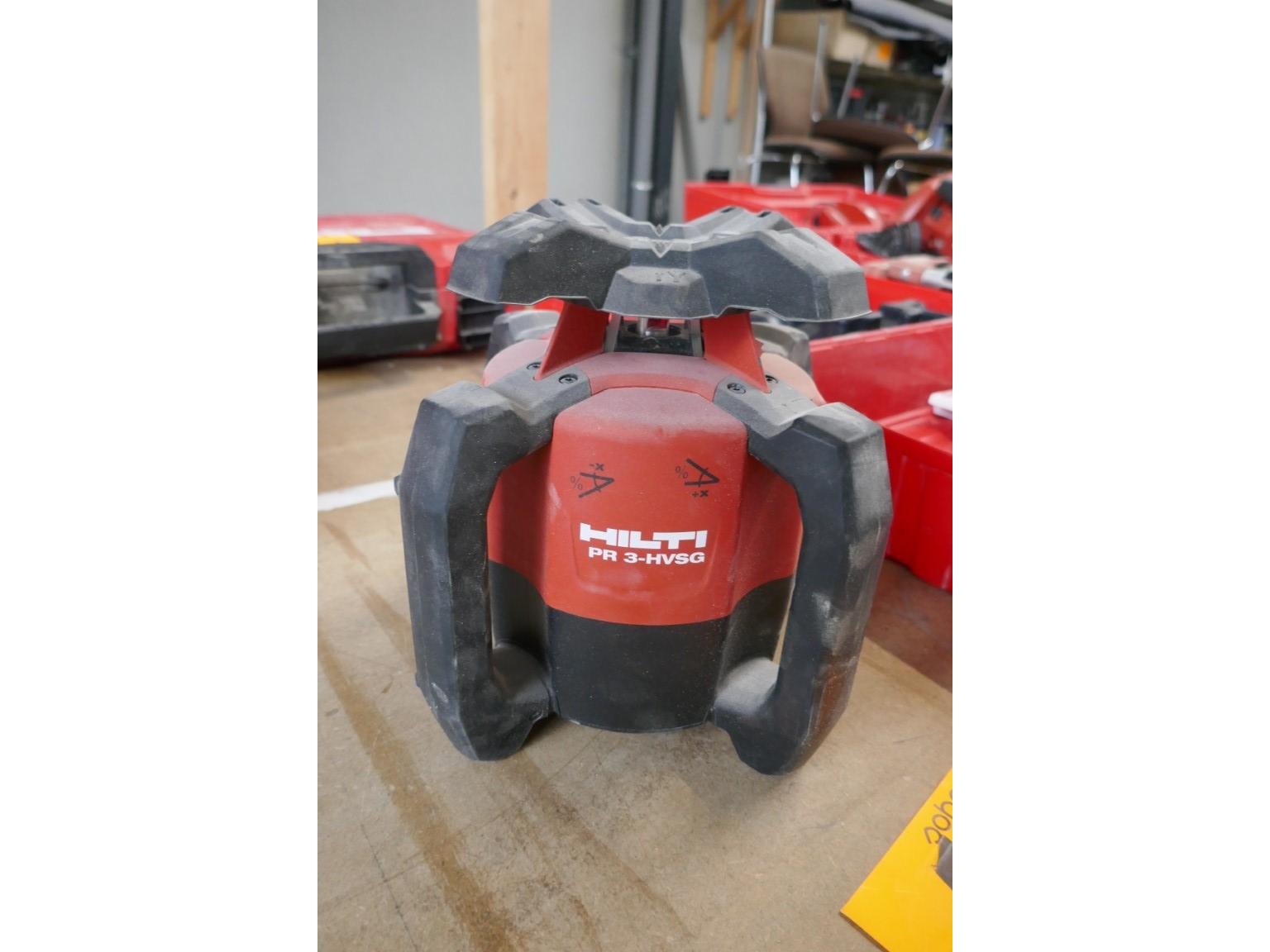 Roterende laser met accessoires<br /> *merk : HILTI<br /> *model : PR 3-HVSG<br /> *met koffer<br /> Laserstatief - merk, HILTI pa 921