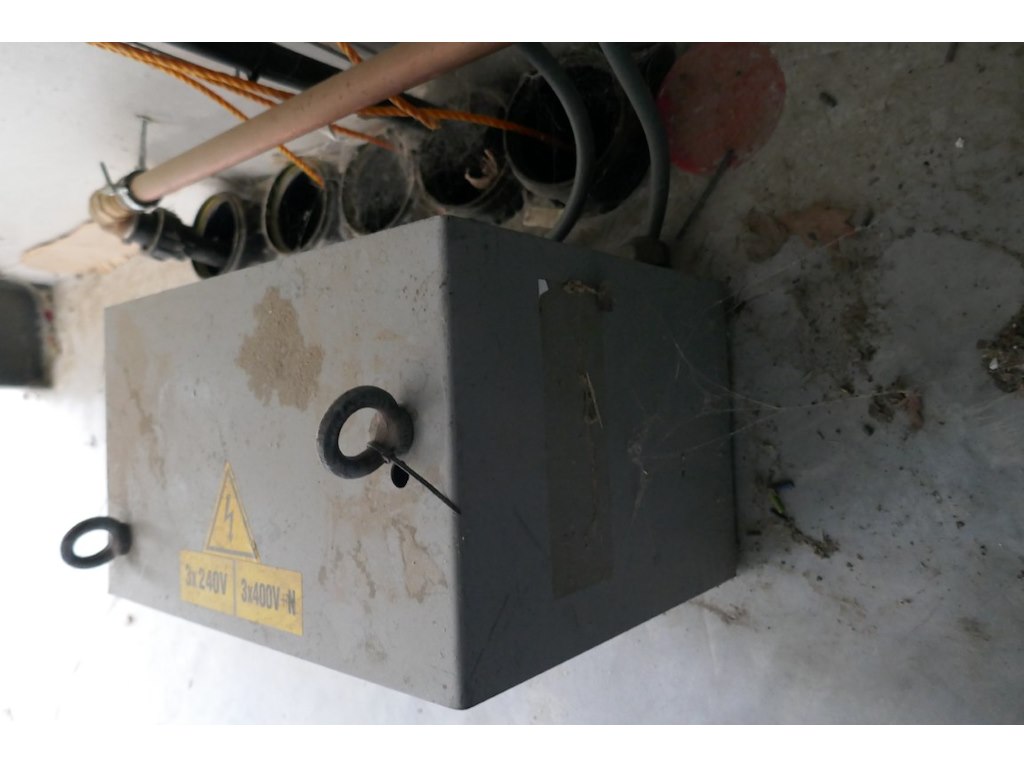 Transformator<br /> merk : niet zichtbaar <br /> capaciteit : 3x 240 V - 3x 400 V<br /> Zelf vakkundig af te koppelen van elektriciteitskast