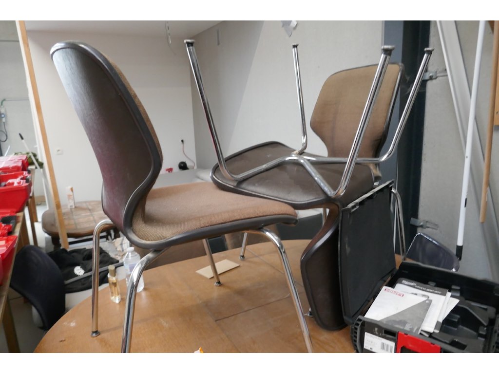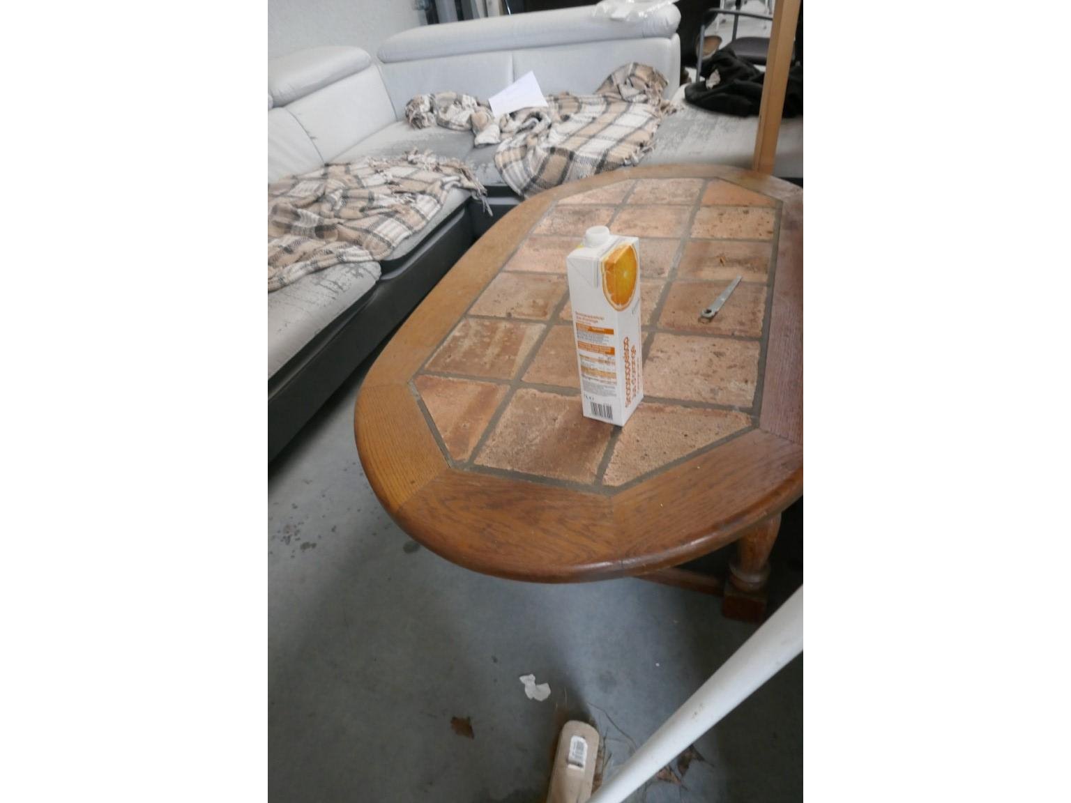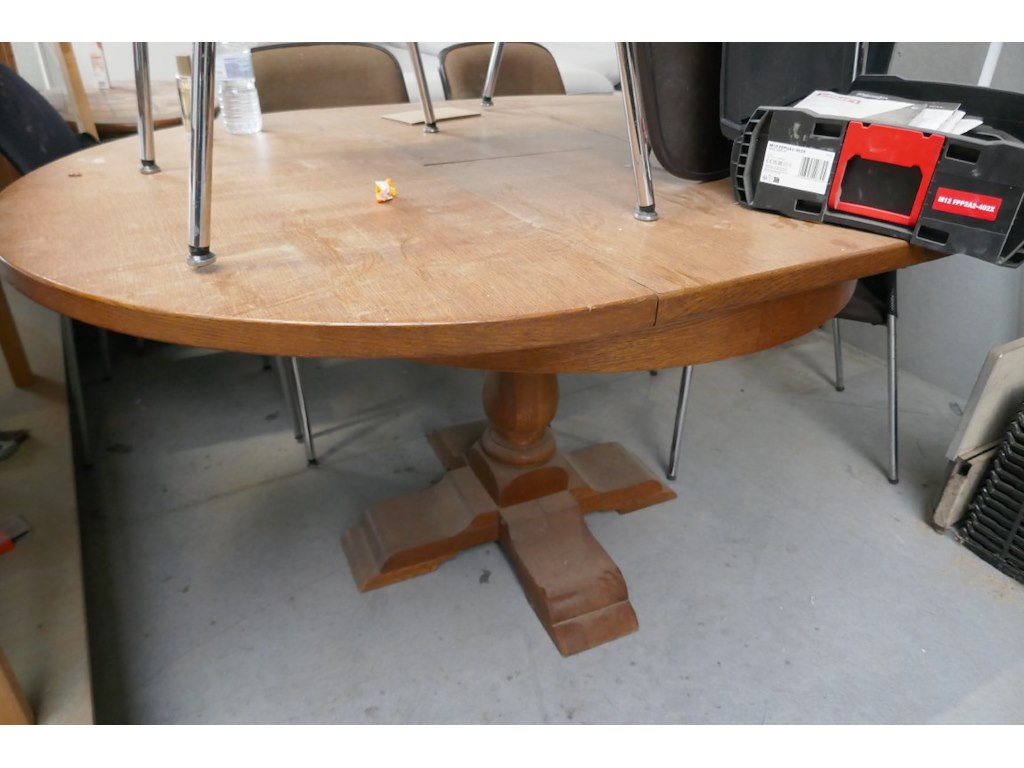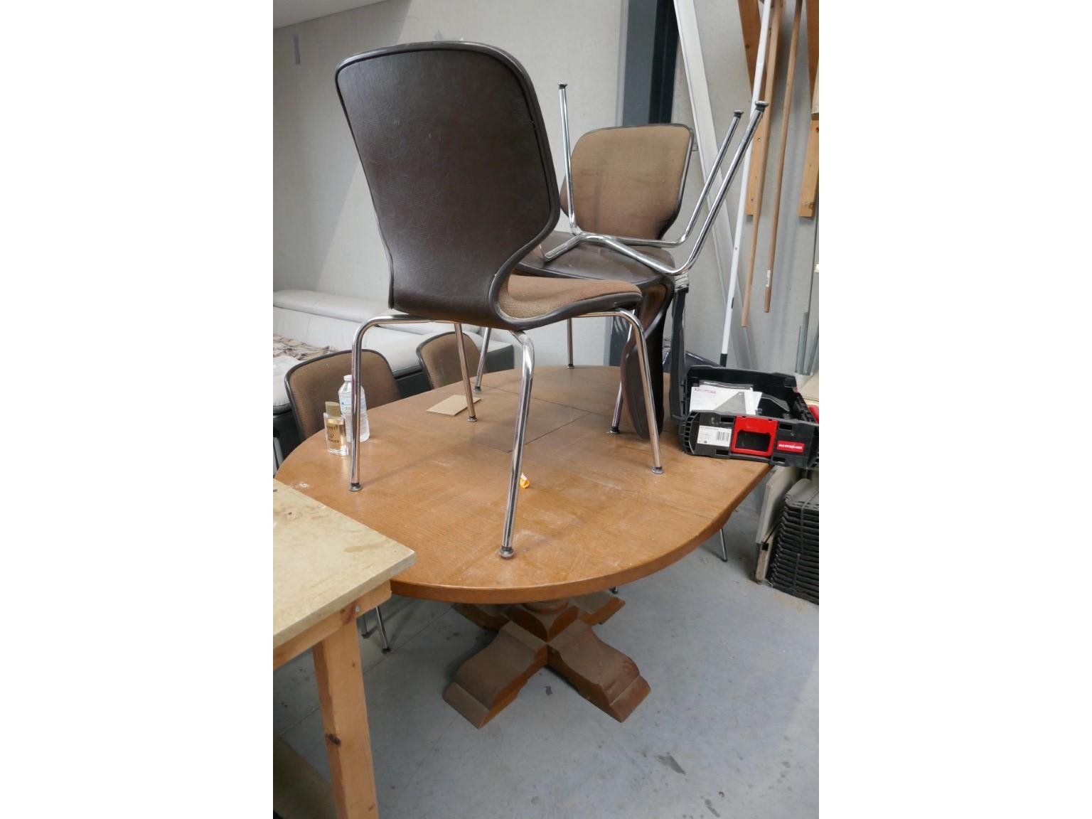 Vintage salontafel - Hoekzetel in kunstlederen bekleding - vintage houten ovalen tafel - 6 tal stoelen