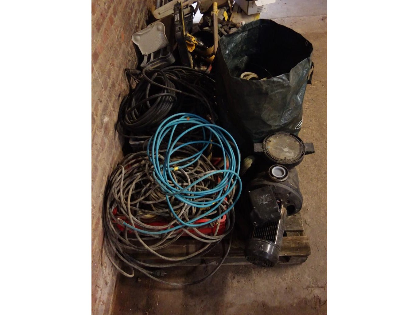 Oa: schroefboormachine, kabels, emmers, werkbak, haagschaar...<br /> Hangaar