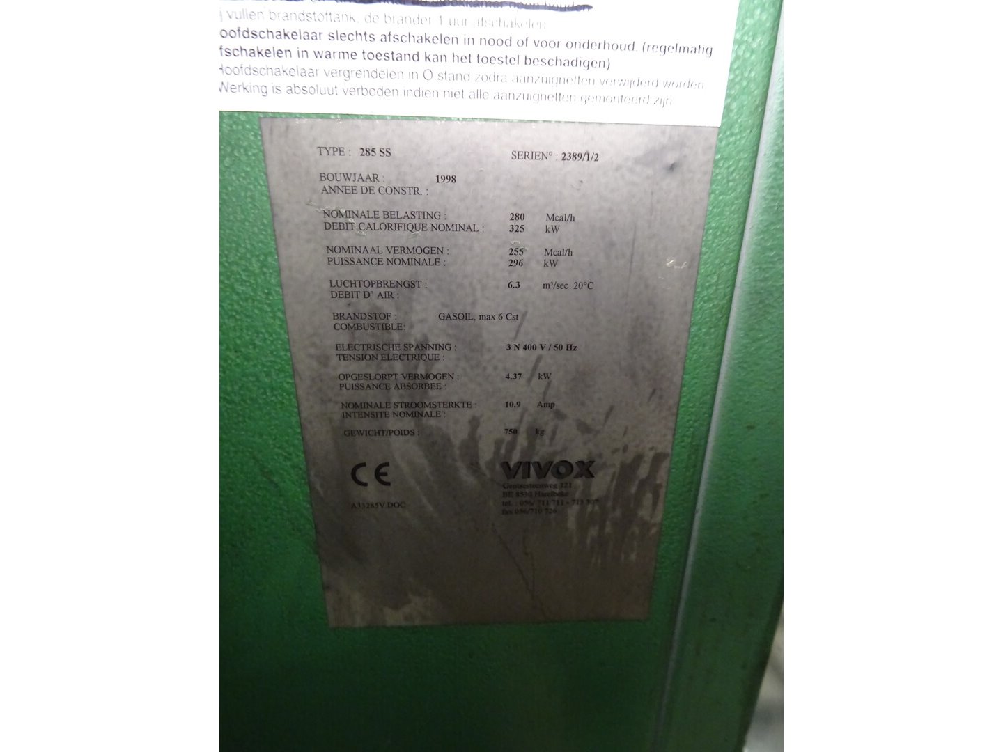 Type: 285SS, 1250x2700x2700, op mazout<br /> Locatie: zone 1
