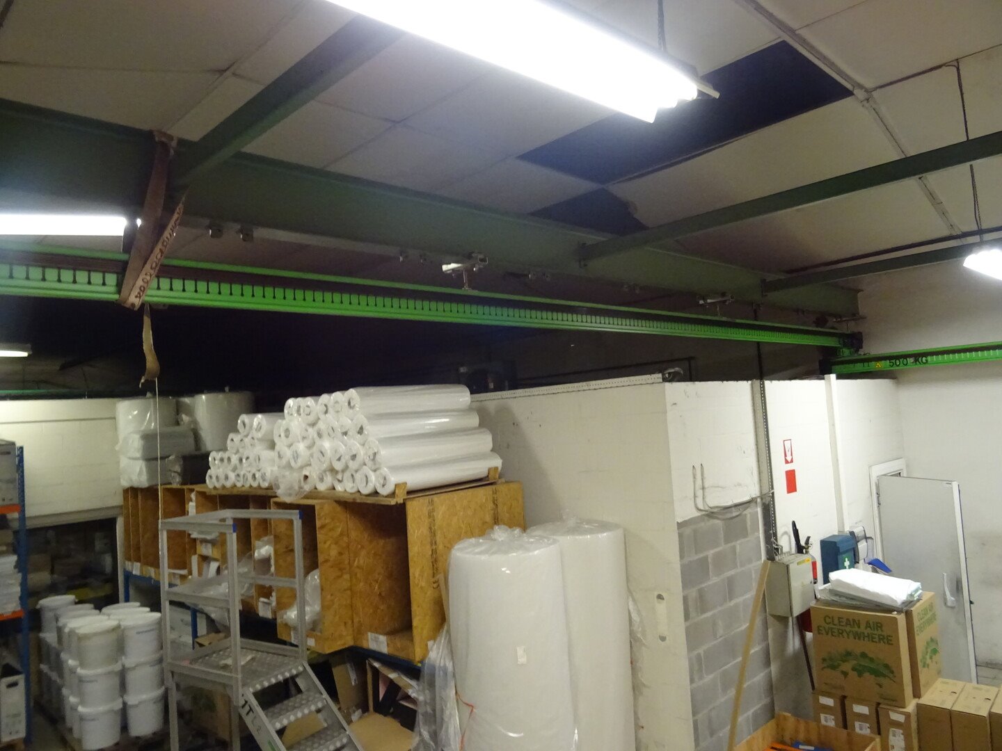 Type: system kt2000, max 600kg, zonder poutrellen enkel lichtgroene opbouw <br /> Locatie: schrijnwerkerij