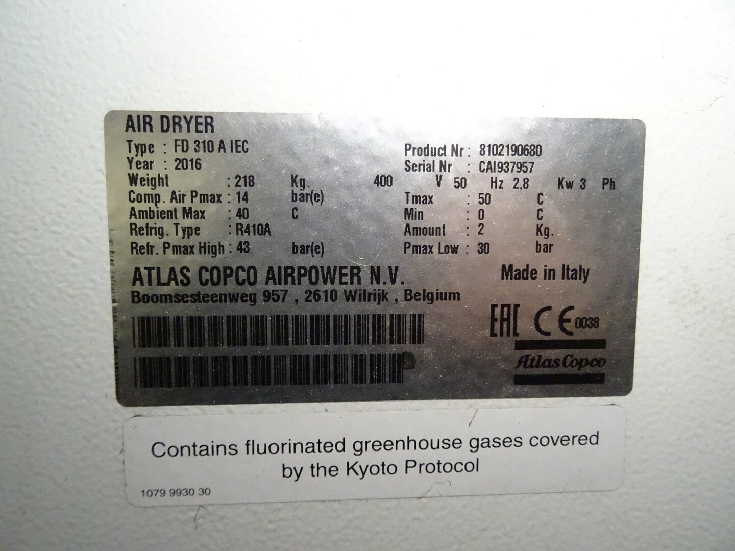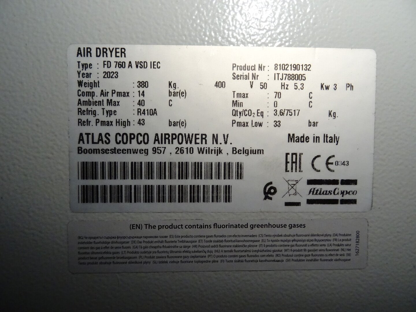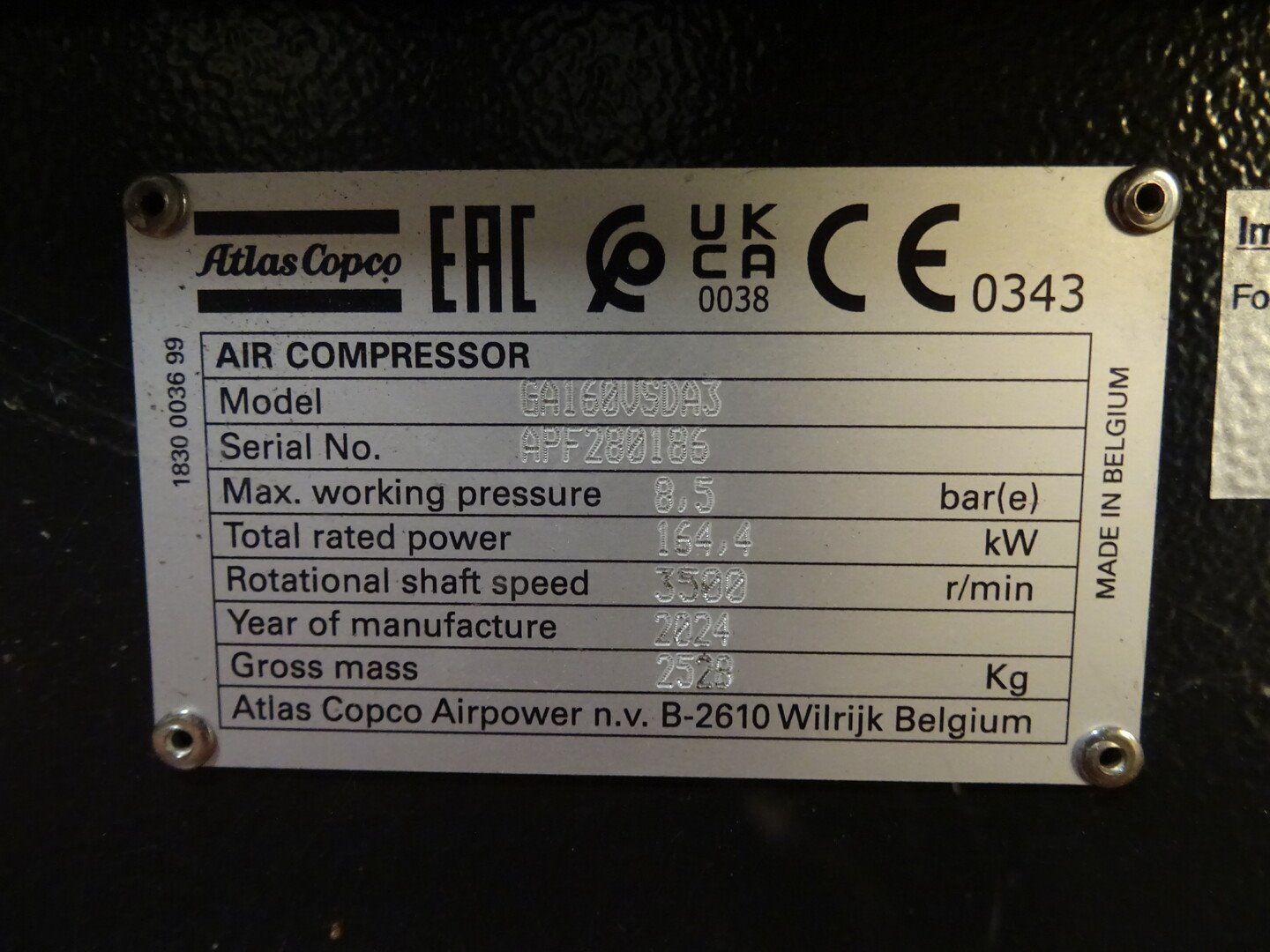 Type: GA 160 VDS+ (bj 2024) / GA 90+ ( bj 2016), drukvaten: 1000L / 2000L / 5000L , drogers: FD 760 AVSD / FD 310 A, alle toebehoren zijn inbegrepen<br /> Locatie: zone 14