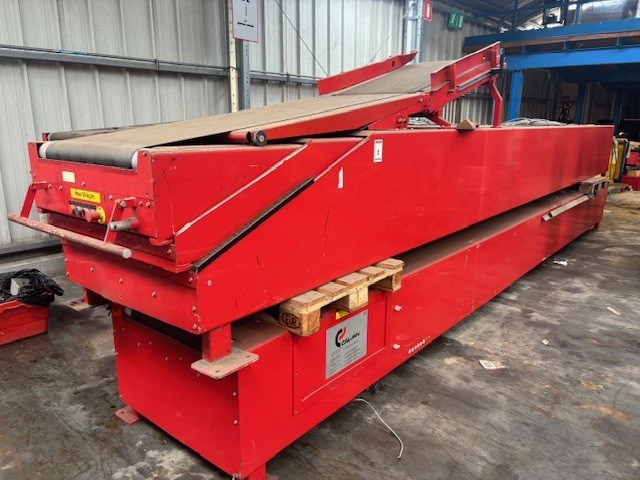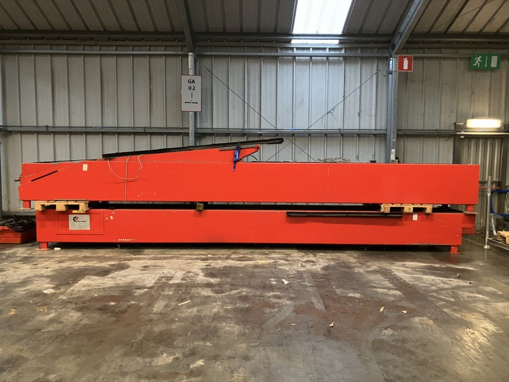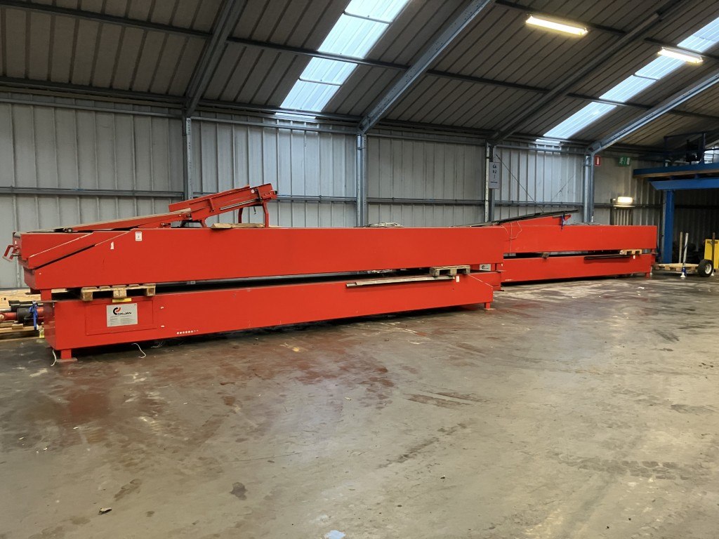 Merk: Caljan<br /> Bouwjaar/maand: 1997/09<br /> Voltage: 400 V<br /> Stroom: 10 APer set: 2 delen<br /> Deel 1: 2 x uitschuifbaar<br /> Ingeschoven lengte 1: 7,5 m<br /> Breedte: 95 cm<br /> Bandbreedte: 66 cm<br /> Deel 2: 1 x uitschuifbaar<br /> Ingeschoven lengte: 7 m<br /> Breedte: 95 cm<br /> Bandbreedte: 66 cm