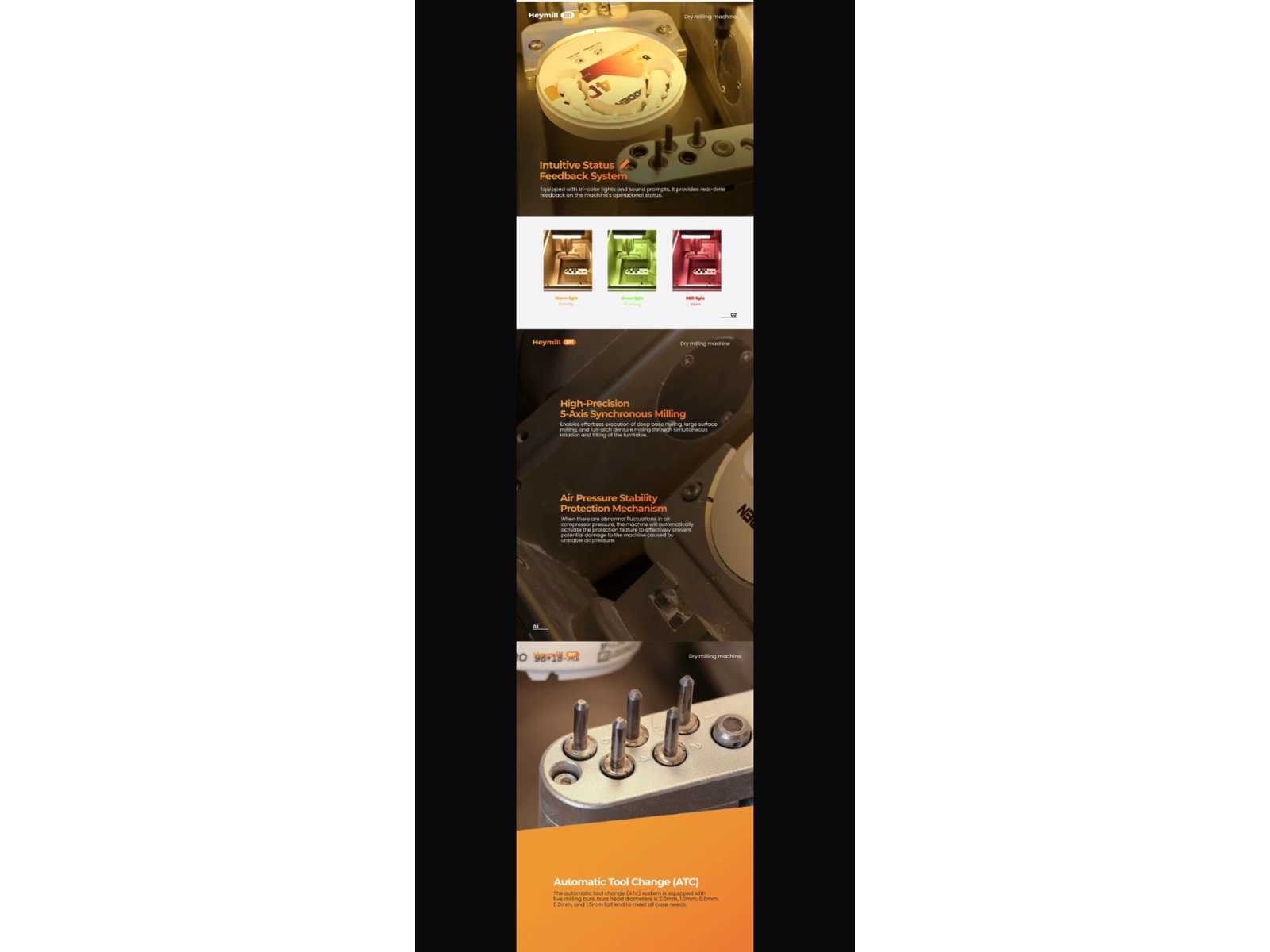 Specification item value Place of Origin China Brand Name Lodden Model Number Heymill-D11 Power Source Electricity Warranty 1 years After-sale Service Online technical support Material Metal, Plastic, Steel Shelf Life 1 years Quality Certification CE Instrument classification Class II Safety standard None Name 5Axis Dry Milling Machine Model Heymill-D11 Weight/Dimension 105kg/W580*D450*H639 Supply Voltage 220V Spindle Powder Fly Motor Air Pressure 0.33-0.8 MPA Grindingaccuracy 0.02MM Rated power 200V-240V Shank diameter 4MM Speed of Spindle 60000rpm/min FAQ