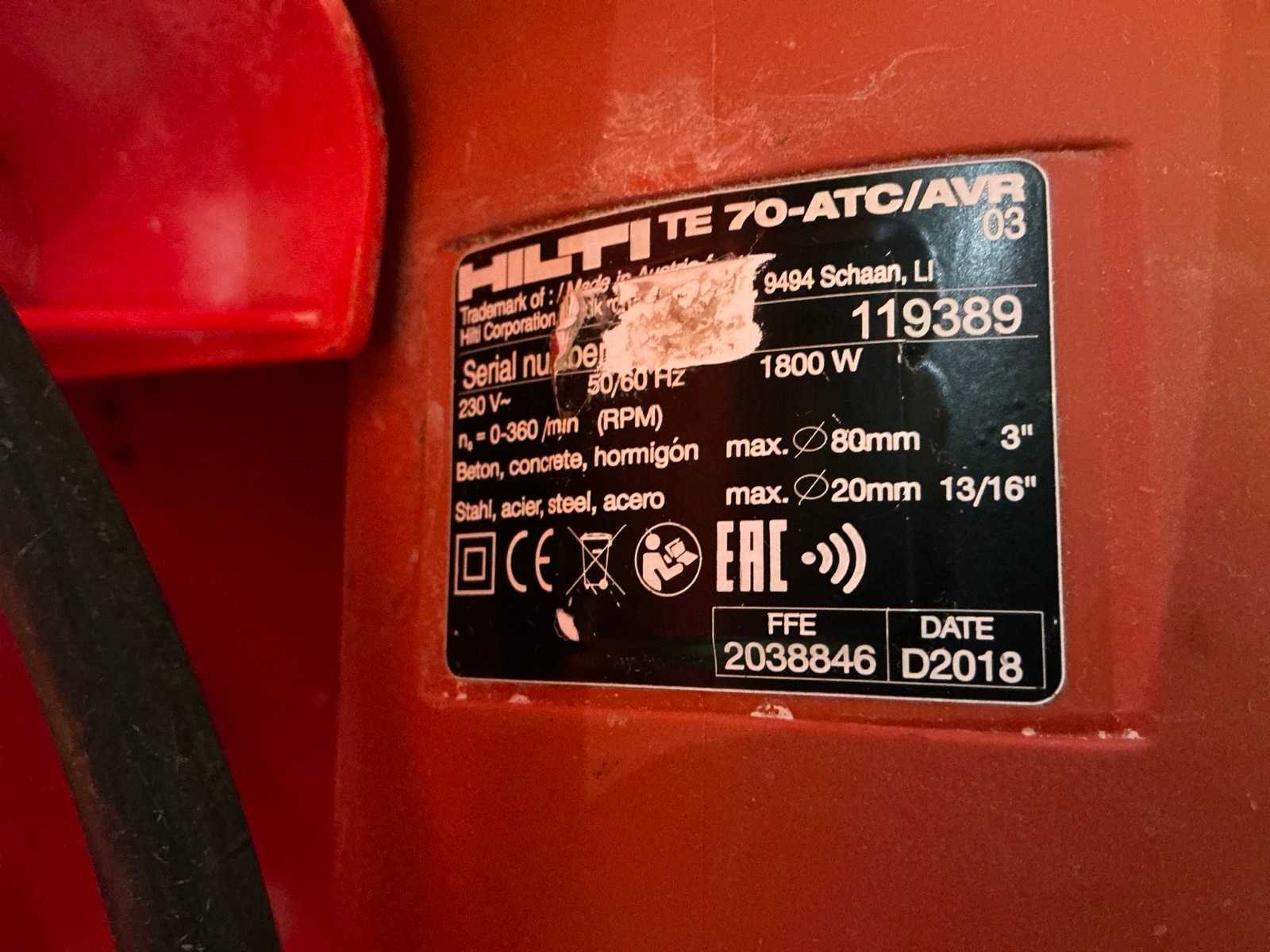 Merk: Hilti Type: TE70-ATC Boor-/breekhamer: true Vermogen: 1800W Met koffer: true Aansluiting: 220V