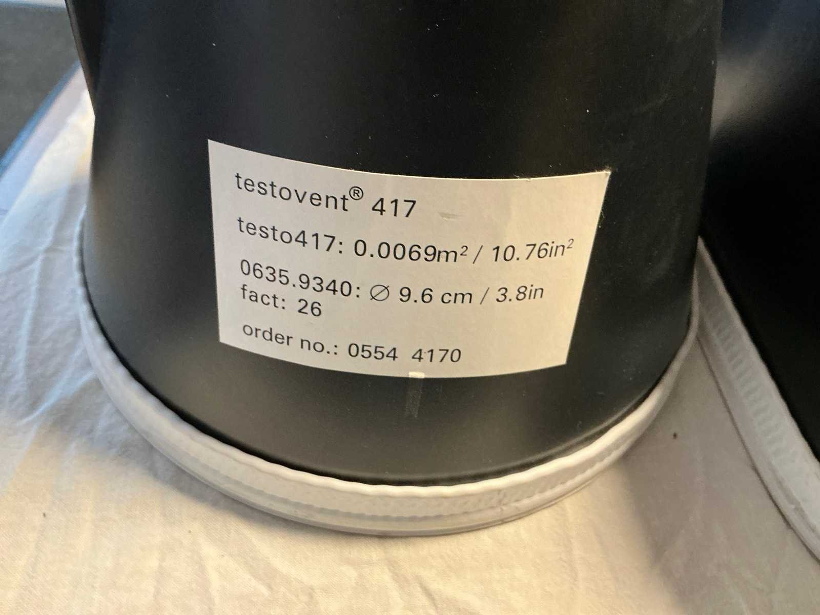Met meetopzetstukken en tas. Merk: Testo Model: 417