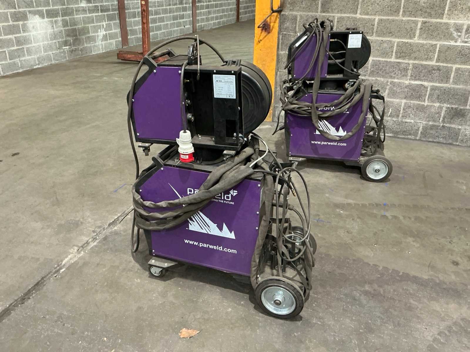 <Br> - Parweld WF400 draadaanvoerunit. - 40A/16,0v - 350A/31,5v. Merk: Parweld Type: XTM 404S Serienummer: 1090388 Max. lasvermogen: 350A Aansluiting: 400V Draadaanvoerunit: true