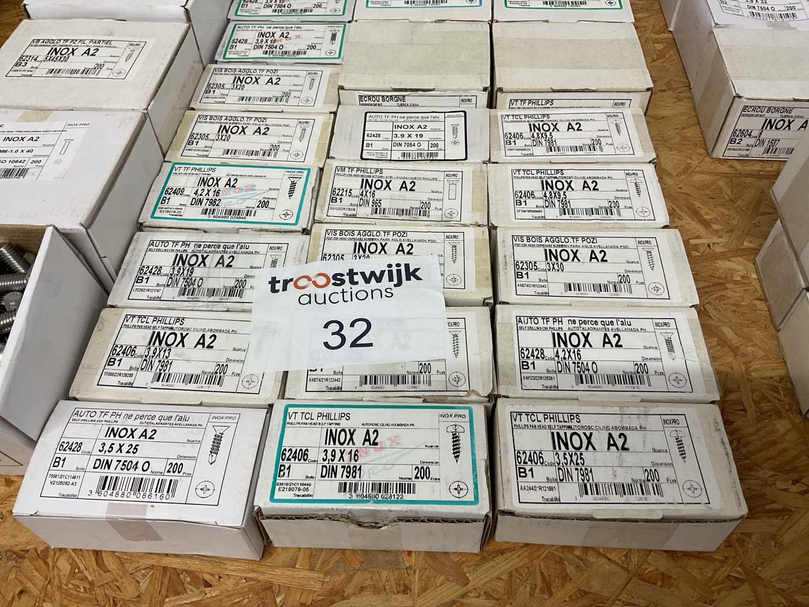 32 dozen inox hout schroeven en bouten
