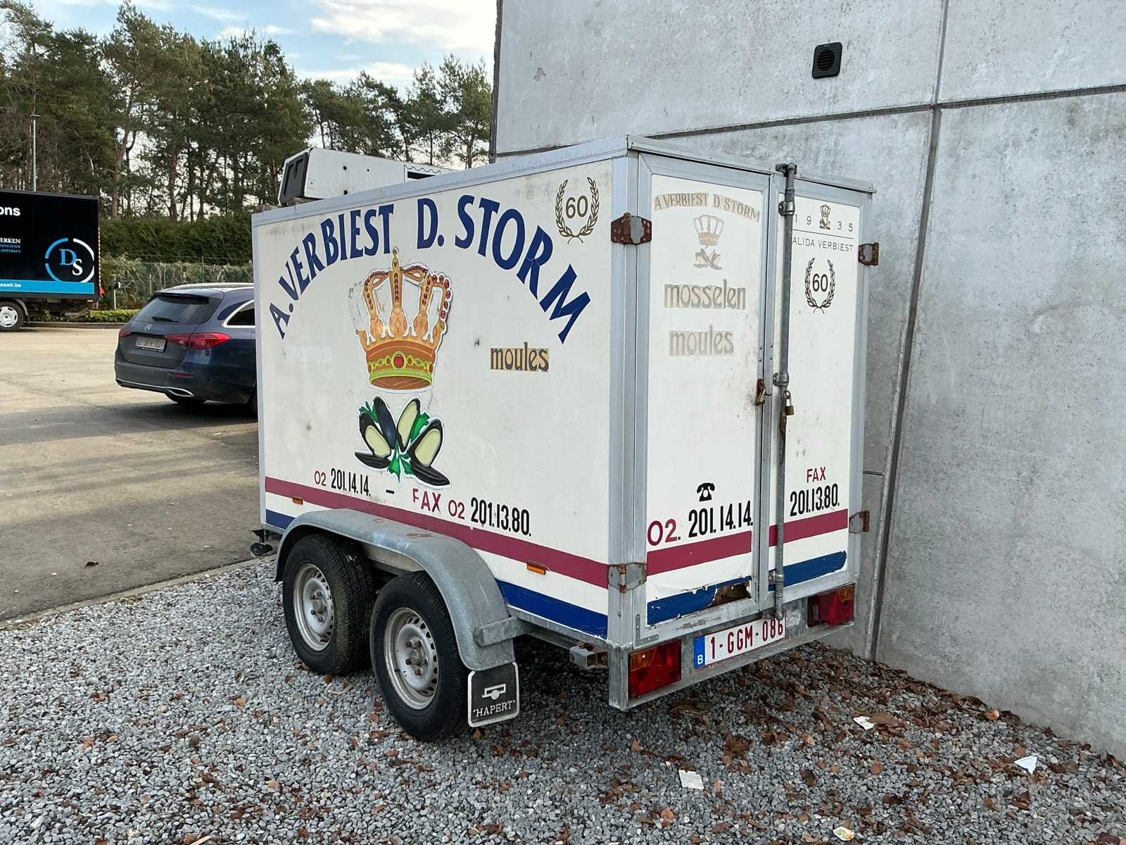 <Br> - Boorddocumenten: niet aanwezig. - Bouwjaar: 1998. - Voorzien van koelgroep. - Afmeting laadbak: circa 250x130xH150cm. - Beschadigd. Merk: Hapert Type: K2001 Chassisnummer: XLHK2000000633900 Aantal assen: 2 Gesloten opbouw: true