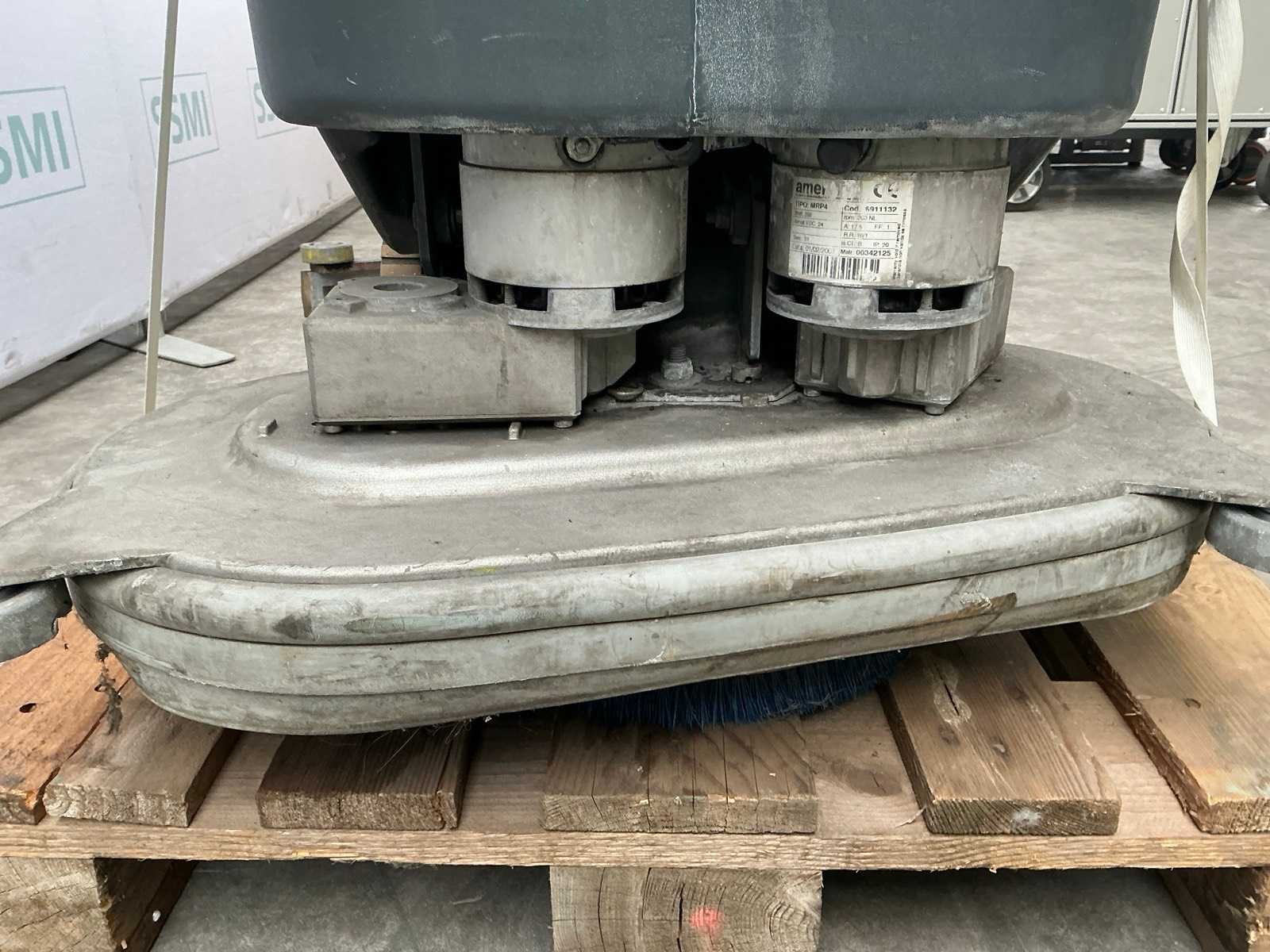 Type: Loop-achter vloerschrubber / droger Vermogen: 1,23 kW Batterij: 24 V gelijkstroom (batterijgevoed) Oplader: 230 V AC, 50–60 Hz Beschermingsklasse: IPX4 Geluidsniveau: 65,8 dB(A) Gewicht: • 107 kg (zonder batterijen) • Zwaarder wanneer batterijen worden geïnstalleerd Gemaakt in: Italië Dit is een professionele/industriële schrobber-droger, die veel wordt gebruikt in fabrieken, magazijnen, werkplaatsen, supermarkten en parkeerplaatsen. Merk: Nilfisk Type: BA 611D