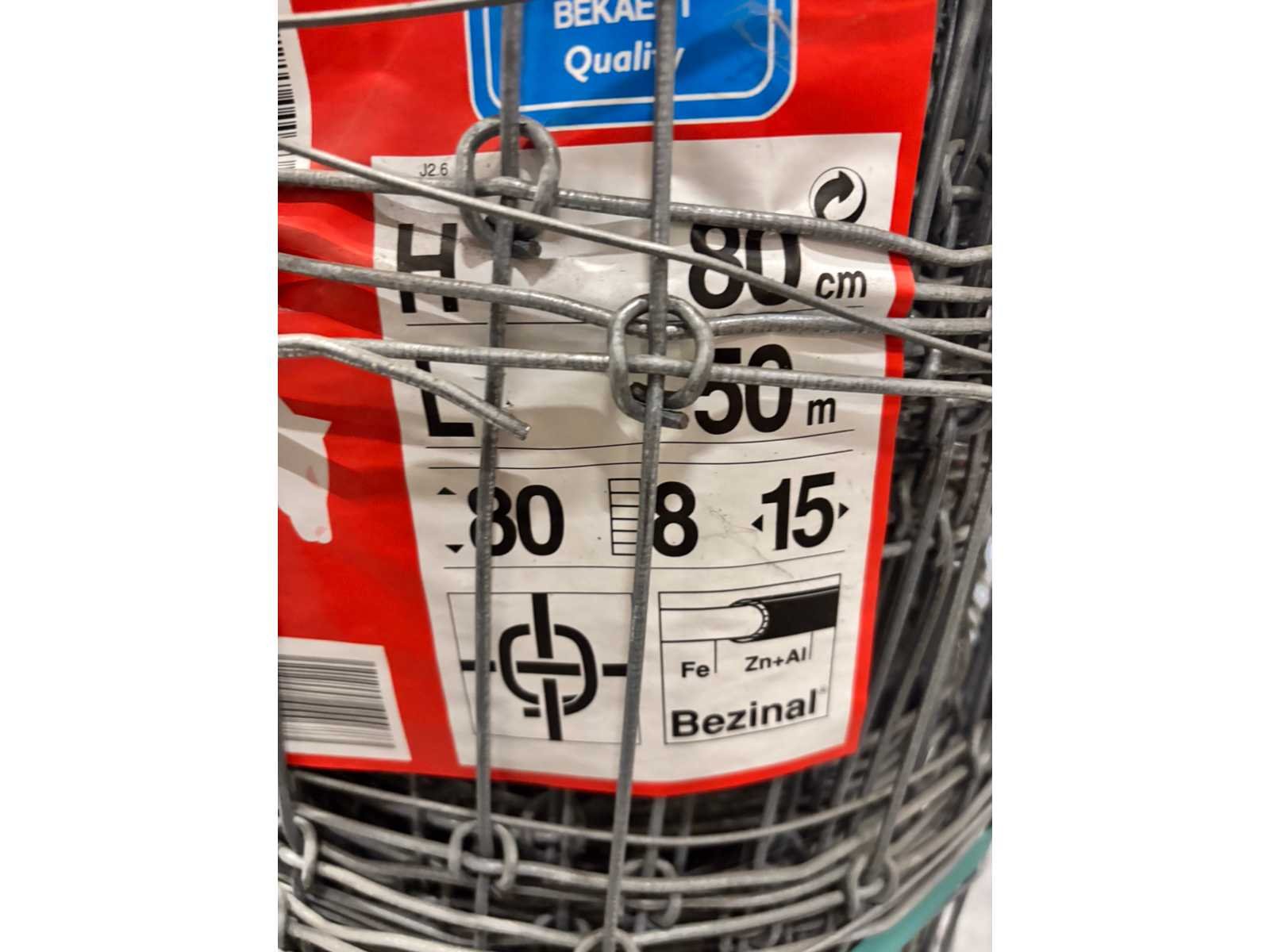 Conditie ongebruikt; lot van 5 rollen; circa 50m/rol; 14B5 Merk: Europees fabrikaat Gewicht: 200kg Hoogte: 80cm Materiaal: Zinc aluminium