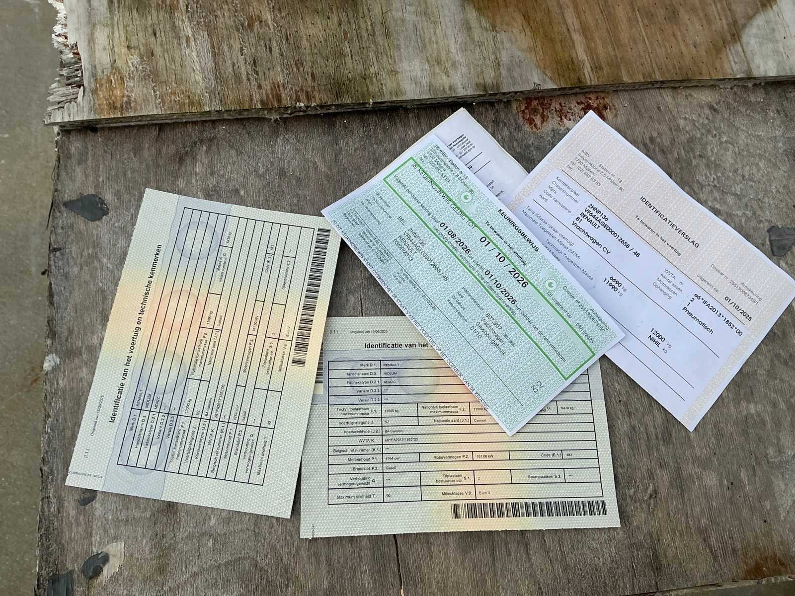 Capaciteit laadklep: 1500kg/ inhoud laadruimte niet inbegrepen Merk: Renault Type: Midlum Chassisnummer VIN: VF644AGE000012658 Cilinderinhoud: 4764cc Kilometerstand bij opname: 818258km Datum eerste toelating: 03/09/2013 Aantal assen: 2 Laadvermogen: 11990kg Aantal sleutels: 1 Emissieklasse: EuroV Hydraulische laadklep: true Gesloten opbouw: true Eigen gewicht: 6690kg Nationaliteit documenten: Belgisch Kentekenpapieren compleet?: true Aantal zitplaatsen: 2 Automaat: true Diesel: true