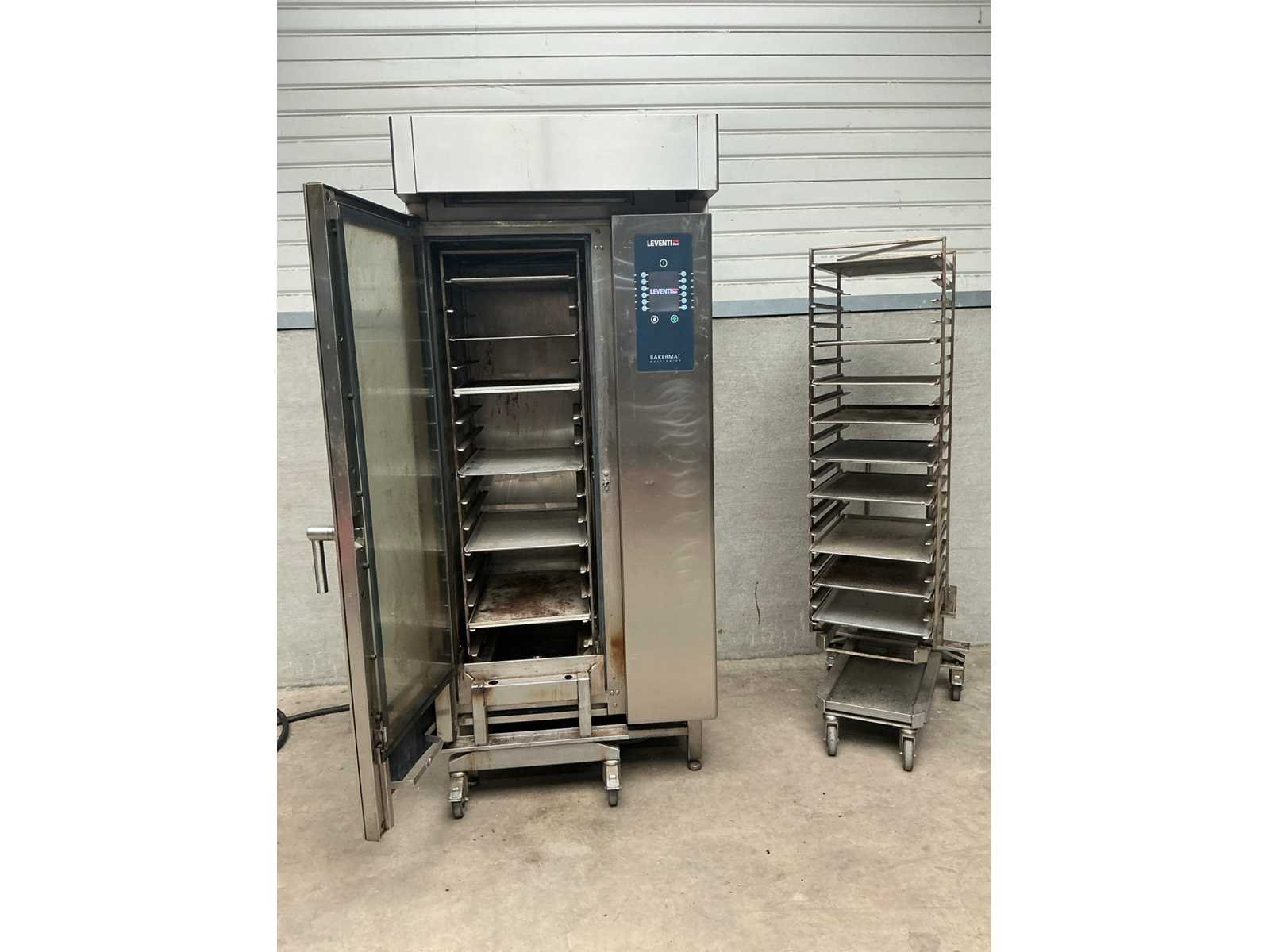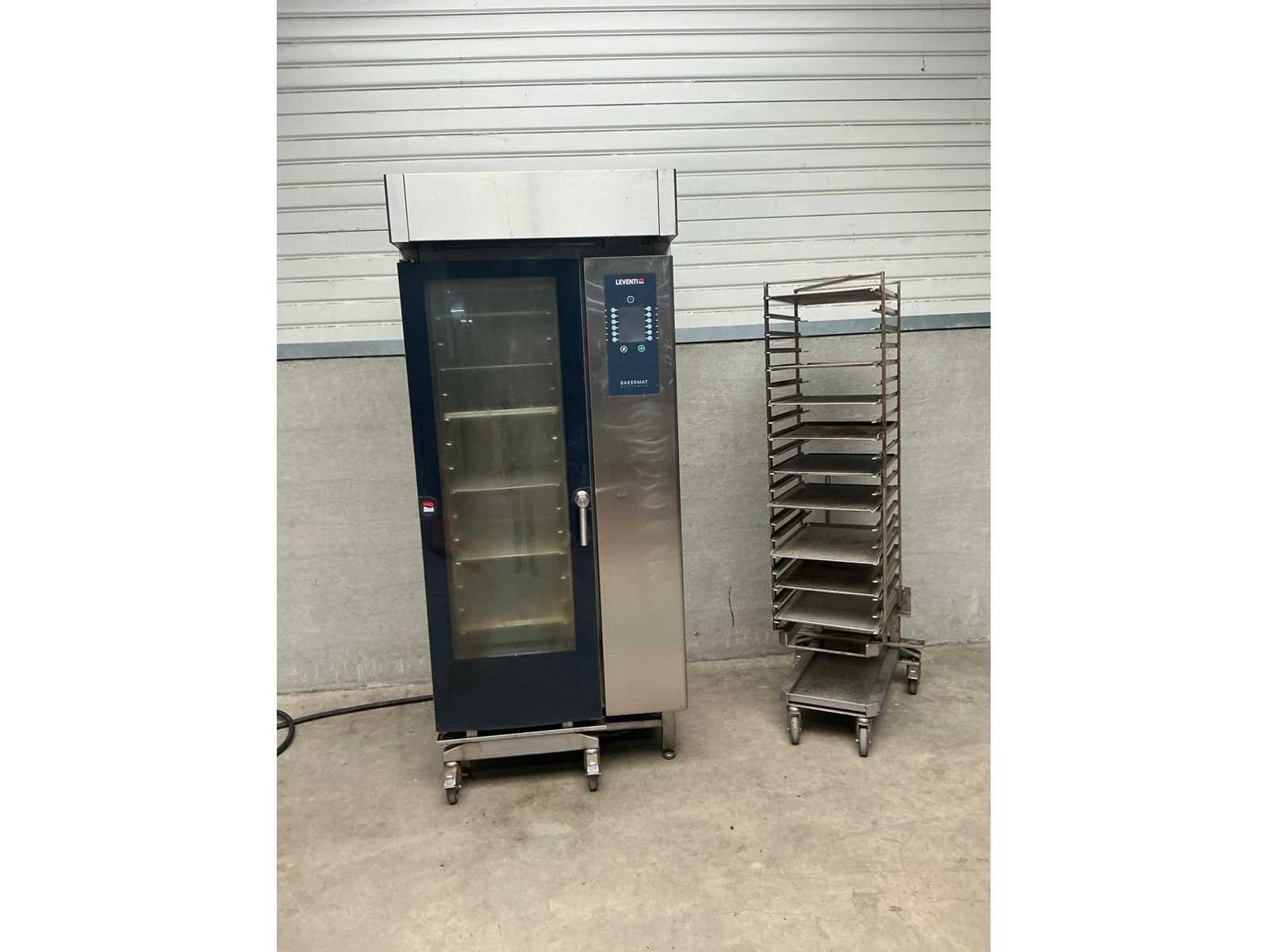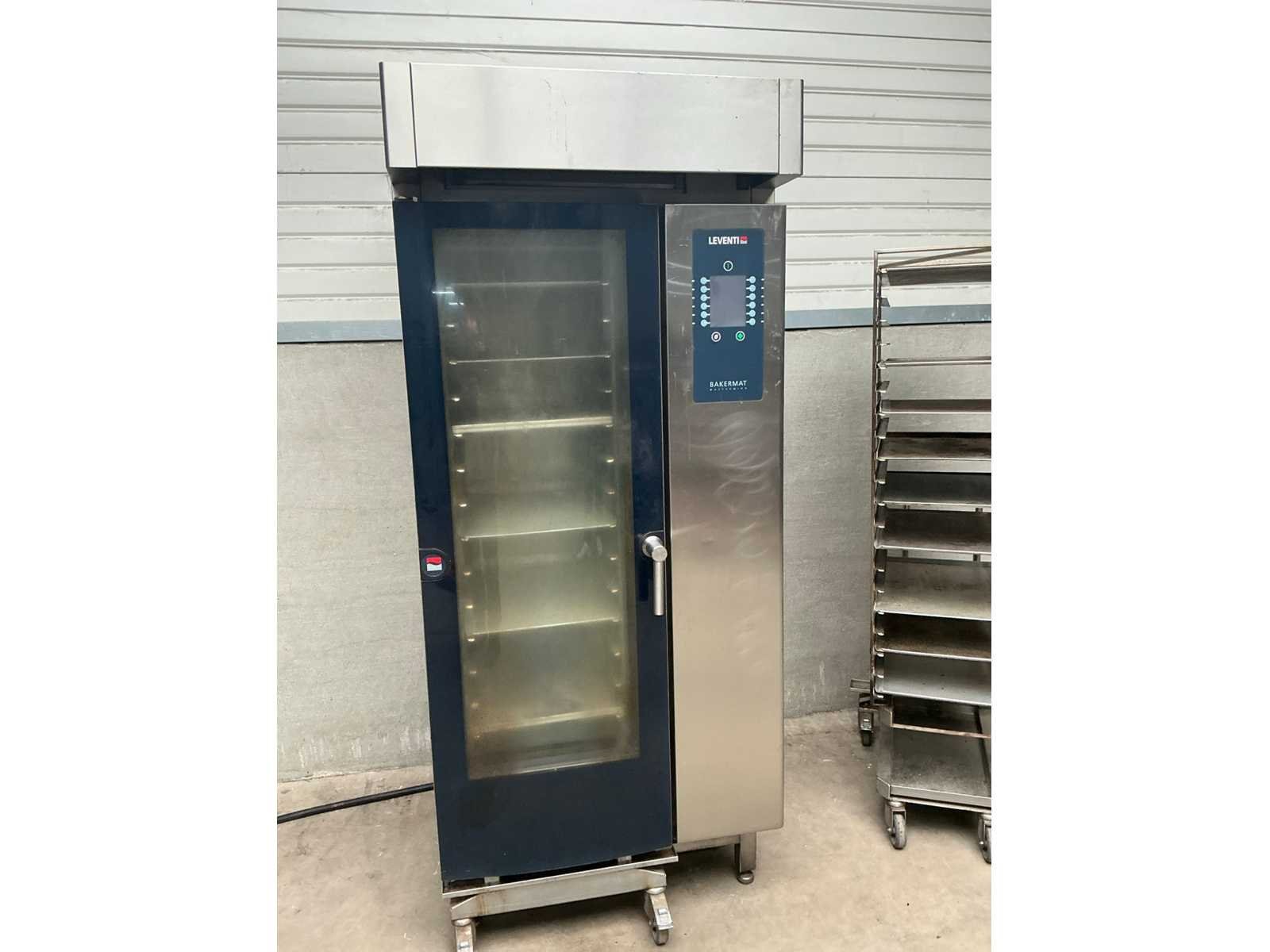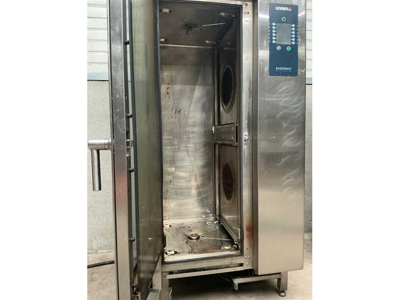 Heteluchtoven met 2 inrijwagens met 15 regalen, voorzien van afzuigkap Merk: Leventi Type: BM15 MM NG Digitale besturing: true Aansluiting: 400V Touchscreen bediening: true Elektrisch: true Rvs: true Totale afmeting L: 90cm Totale afmeting Breedte: 91cm Totale afmeting Hoogte: 210cm
