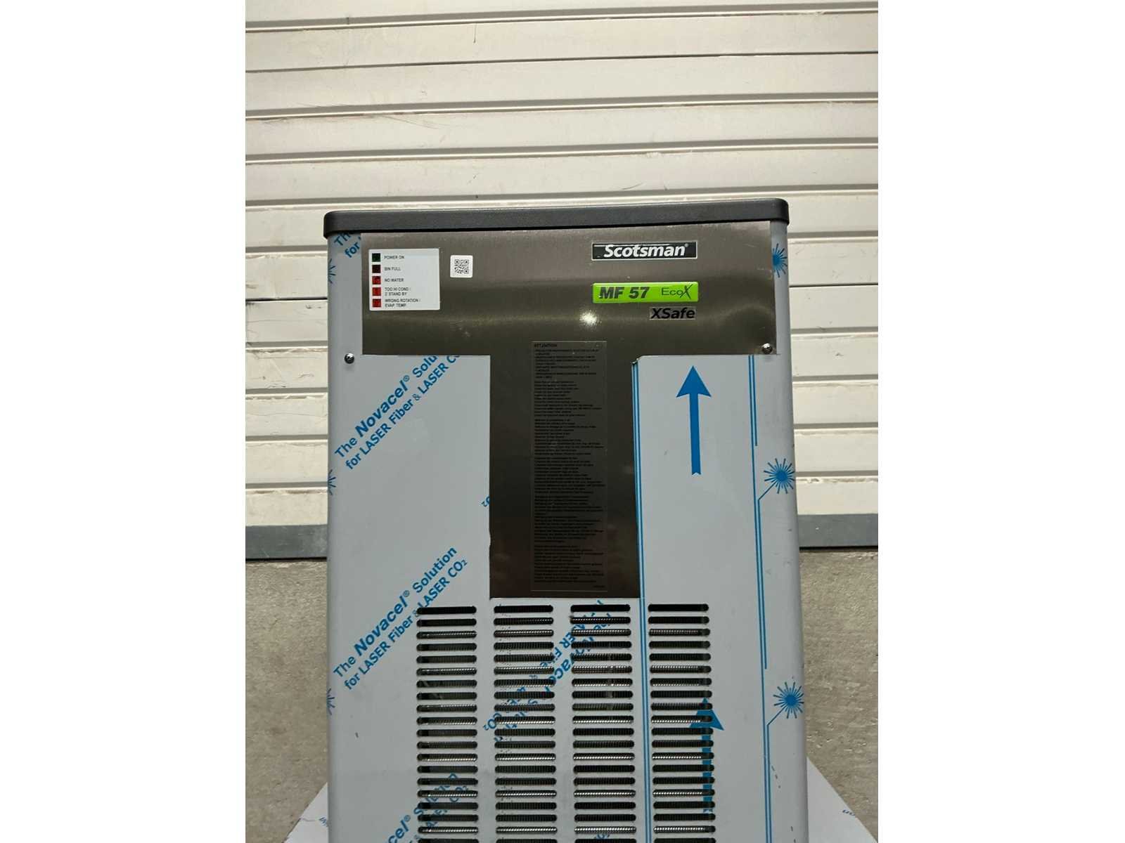 Nieuw in doos, Scotsman schilferijs machine met bunker, productiecapaciteit: 410 kg/24u, opslagcapaciteit: 243kg Merk: Scotsman Type: MF57 Hoeveelheid koudemiddel: 243kg Capaciteit.: 410kg/24 hr Aansluiting: 230V Ingebouwde koelcompressor: true Totale afmeting L: 773cm Totale afmeting Breedte: 850cm Totale afmeting Hoogte: 2065cm
