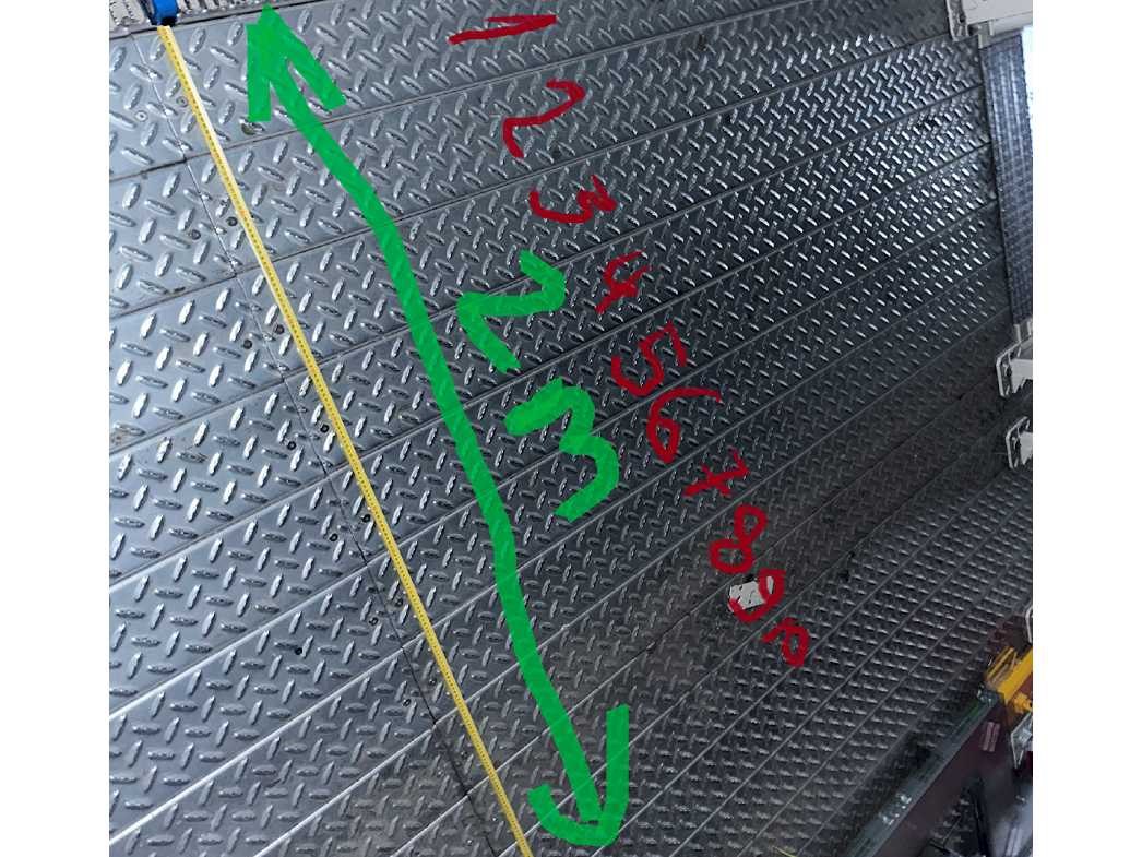 5 ton gestapelde gegalvaniseerde stalen vloerpanelen gebruikt voor industriële bouwvloeren. De panelen zijn netjes op een houten pallet geplaatst, klaar voor installatie of transport. Deze elementen worden doorgaans gebruikt als dragende componenten in mezzanines, fabrieksvloeren of verhoogde platforms, en bieden sterke en duurzame ondersteuning voor zware industriële toepassingen. Op de achtergrond zijn verschillende grote transportkisten te zien in een magazijnomgeving. Per paneel: LANG- 3M HOOGTE - 75MM BREEDTE - 0,20M GEWICHT - 23,2 KG