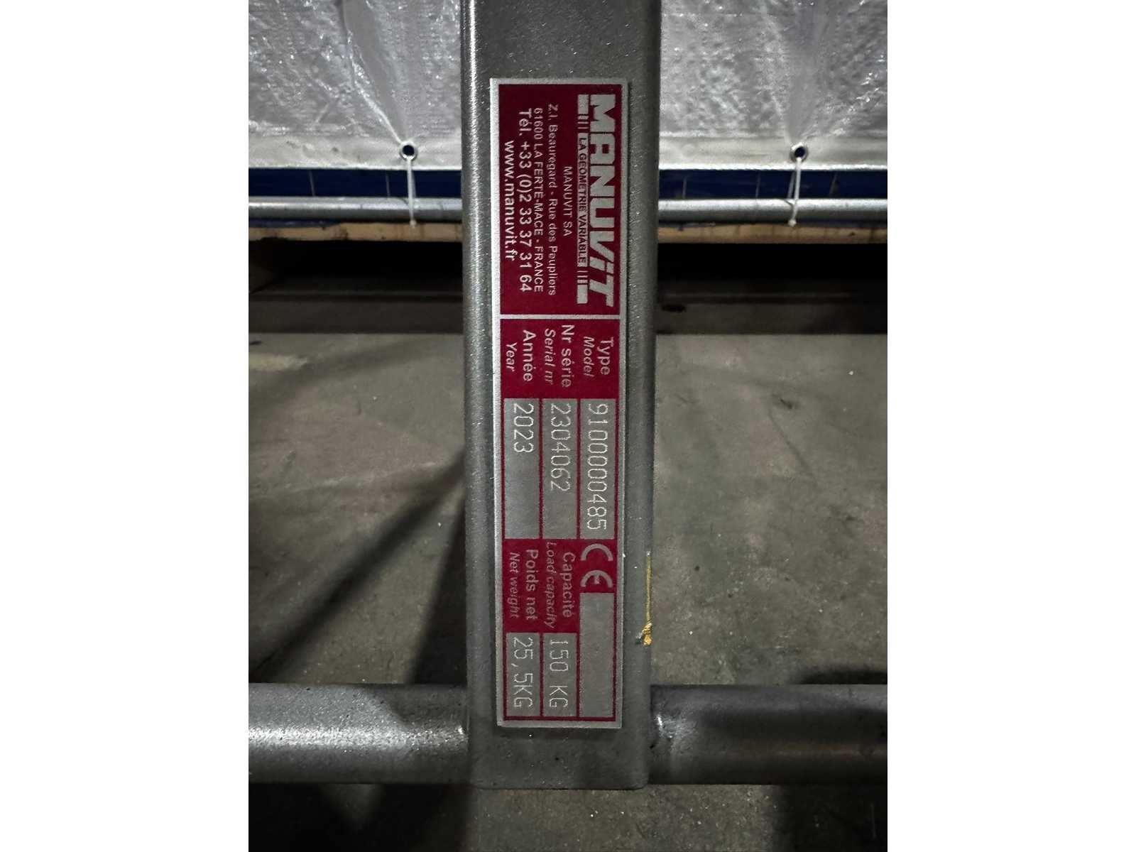 Manuvit is een merk dat bekend staat om materiaalbehandelingsapparatuur (trolleys, hefhefmachines, stapelaars) die worden gebruikt in werkplaatsen, magazijnen en industriële omgevingen. Afhankelijk van de exacte configuratie beschikt dit model meestal: Handmatige bediening Klem- of hefmechanisme Ontworpen voor zware lasten (vaak ±100–150 kg) Gebruikt voor gasflessen of soortgelijke voorwerpen Merk: Manuvit Type: 9100000485 Bouwjaar: 2023 Serienummer: 2304062 Laadvermogen: 150kg Afmeting l: 85cm Afmeting b: 55cm Afmeting h: 110cm Eigen gewicht: 25,5kg