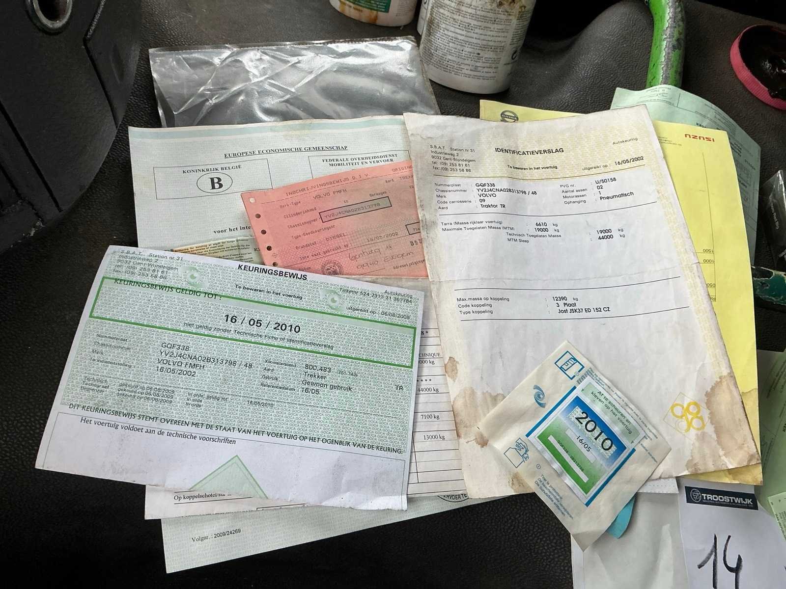 Gelijkvormigheidsattest niet aanwezig/ inschrijvingsbewijs ok/ identificatieverslag ok/ werking trekker niet gekend/ kmstand niet gekend/ zonder verdere gegevens Merk: Volvo Chassisnummer VIN: YV2J4CNA02B313798 Datum eerste toelating: 16/05/2002 Type transmissie: Automatisch Aantal assen: 2 Aantal sleutels: 1 Emissieklasse: Euro3 Slaapcabine: true Eigen gewicht: 6610kg Aantal zitplaatsen: 2 Automaat: true Diesel: true