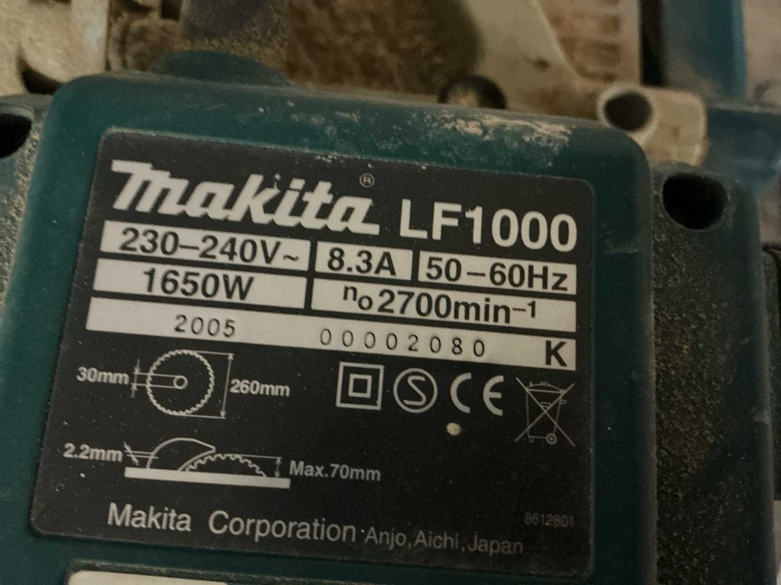 Merk: Makita Type: LF1000 Zaagblad Ø: 260mm Verstek: true Tafel afmeting l: 580mm Tafel afmeting b: 500mm Motorvermogen (kW): 1.65kW Aansluiting: 230V