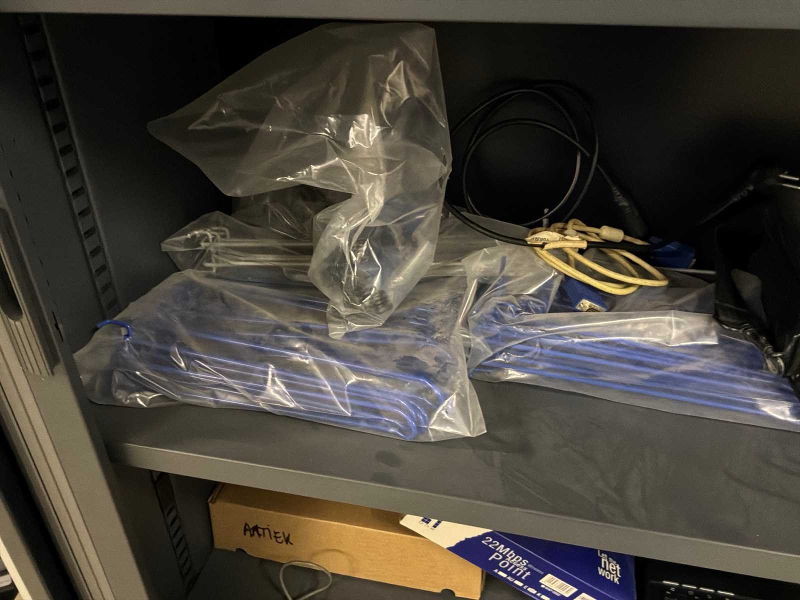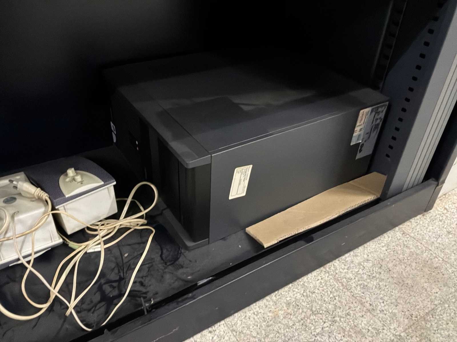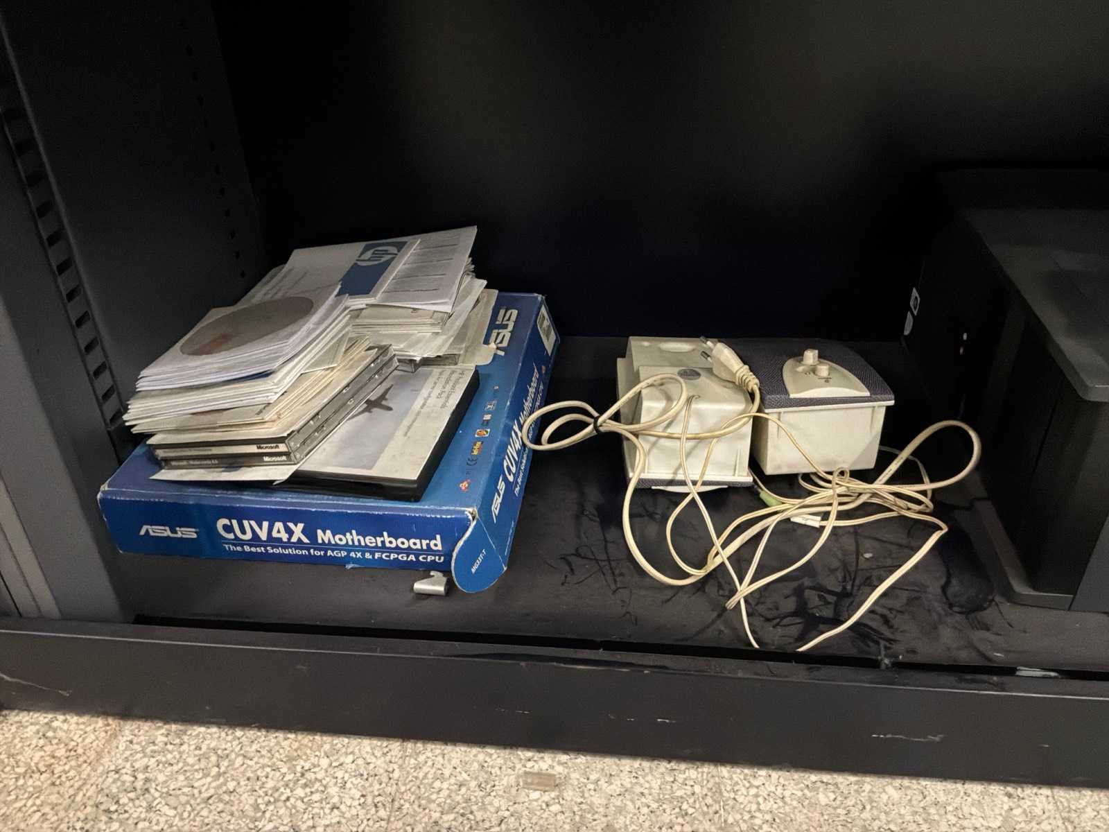 Met inhoud, waaronder verschillende IT materiaal waarvan werking onbekend, inloggegevens/paswoorden niet gekend. 3x pc, 1x laptop, 1x server, 4x monitor, 5x toetsenbord, 1x faxtoestel. Boekhouding in lichtgrijze kast niet inbegrepen.
